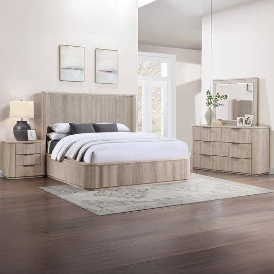 Herman - 4 Piece Set (Queen Bed, Nightstand, Dresser, Mirror) - Charcoal