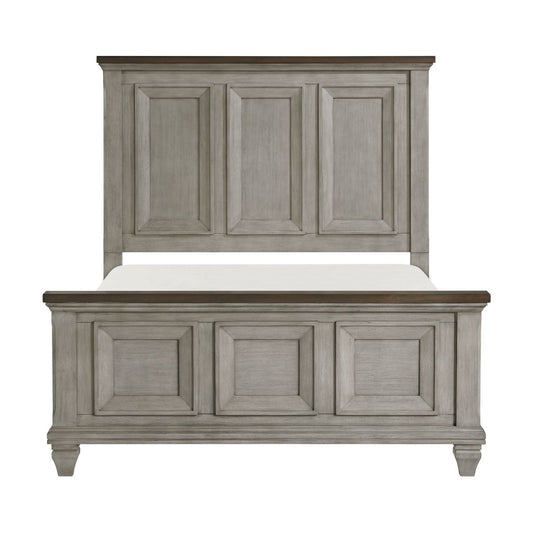 Hebron - 4 Piece Set (Queen Bed, Nightstand, Dresser, Mirror) - Dark Brown / Beige