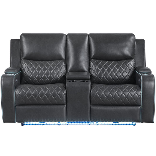 Daniel - Triple Power Leather Theater Loveseat - Gray