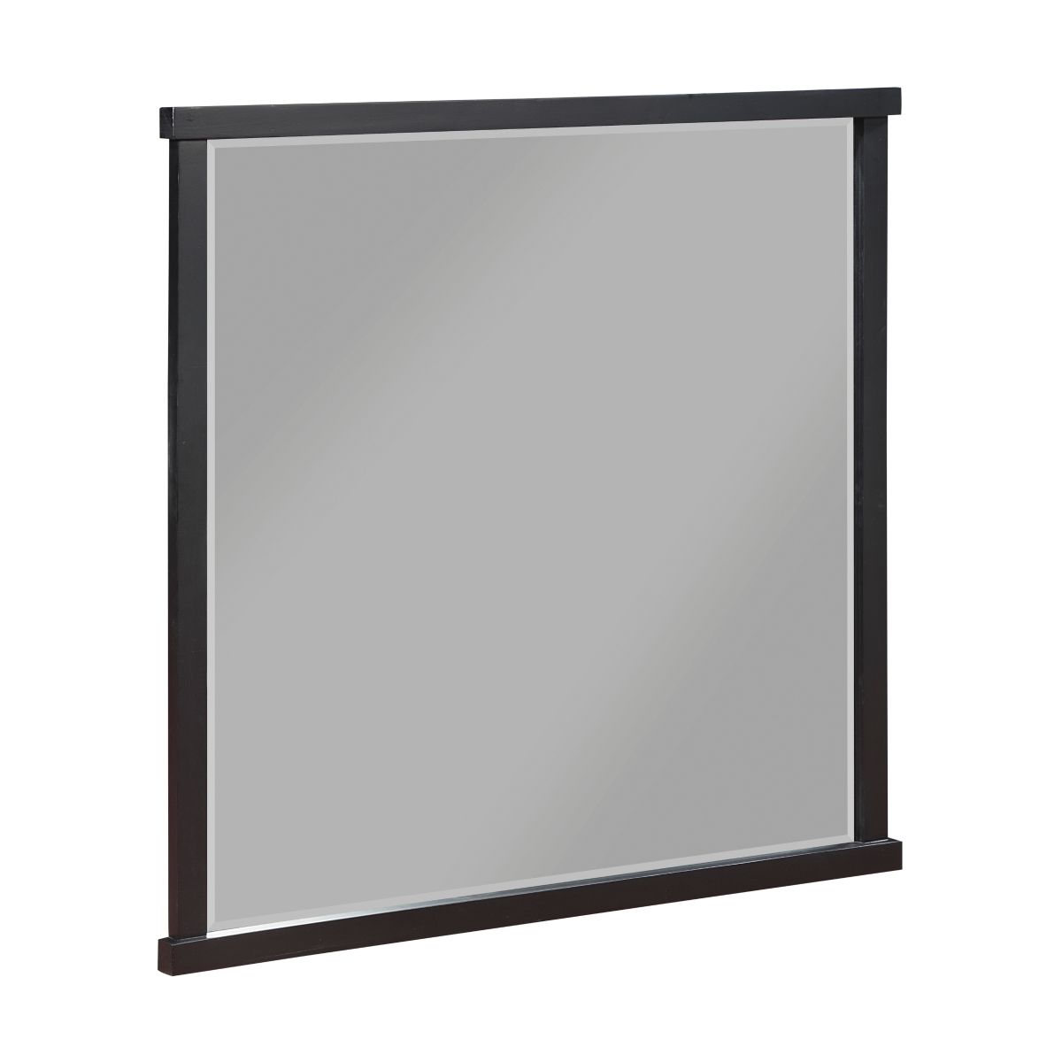 Modern lines pair with texture and hue to create the dynamic look of the Acworth Collection. The black finish over oak veneer of the mirror's frame lends to the modern-industrial inspired aesthetic that comprises the collections design.