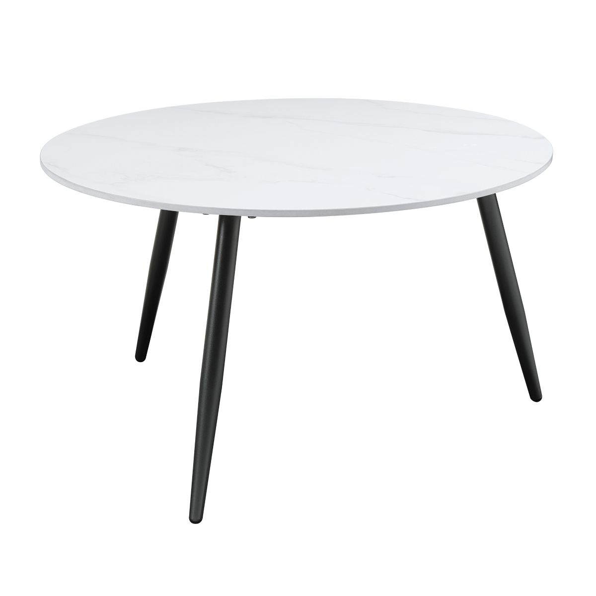 Creatively designed to complement your modern living room, the Alaina Collections streamlined profile pairs three occasional tables for a cohesive presentation. Conveniently packaged together, the nesting round cocktail tables and round end table feature marble-inspired sintered stone tops and black finished metal legs.