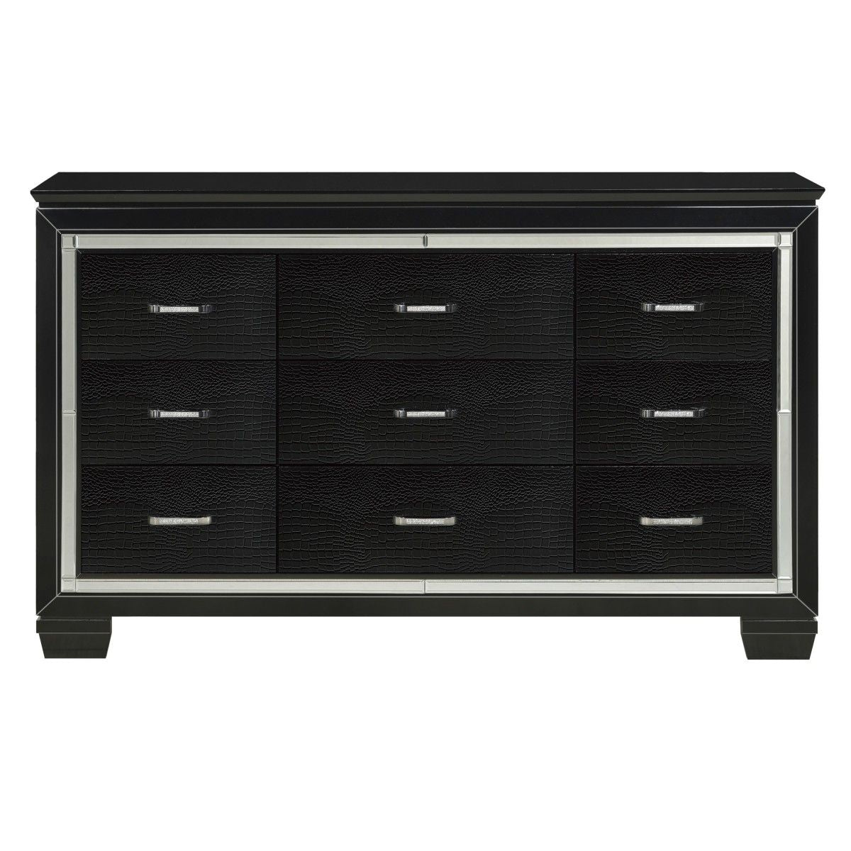 Glamour reigns in the design of the Allura Collection. Alligator embossing and high polished crystal-enhanced hardware boldly accent the finish of the dresser.