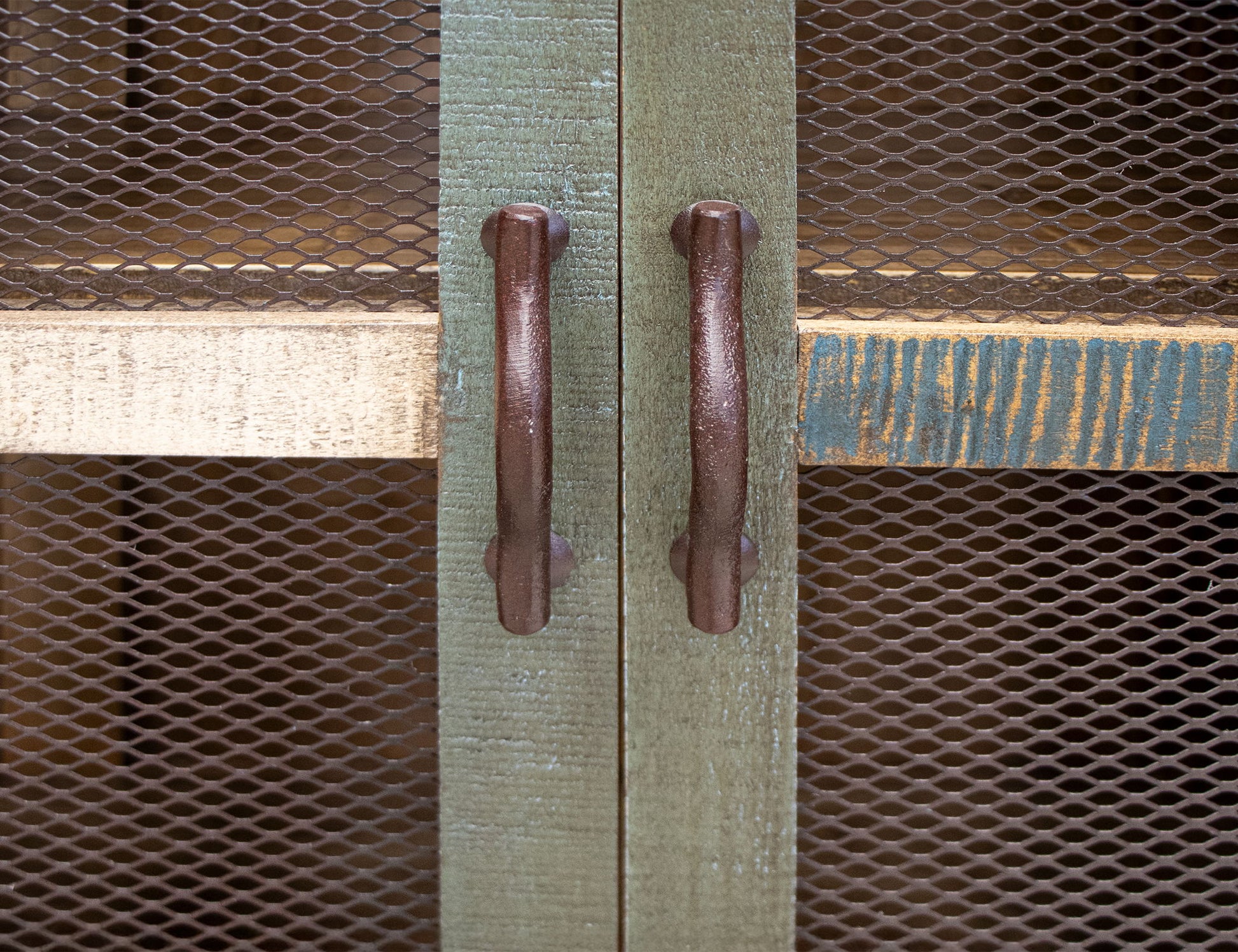 Iron Mesh Door Console. Discover the ideal rustic accent for your space within our Antique Multicolor collection. Meticulously crafted from solid pine wood and adorned with a distressed multicolor finish, each piece in this collection exudes uniqueness in every aspect.