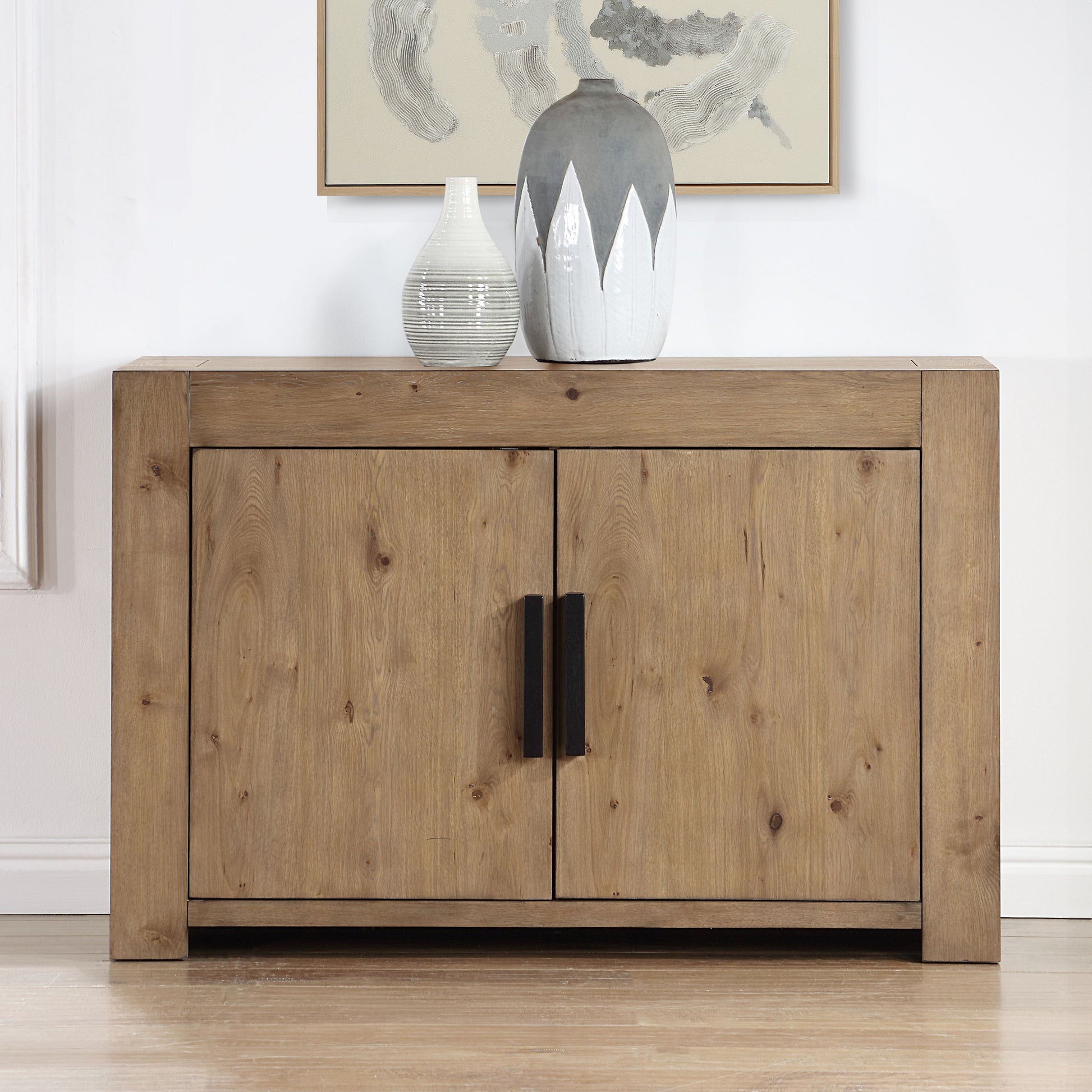 The Aubrey driftwood-finished Server offers ample storage for all your dining essentials. With Craftsman styling, clean lines, and substantial proportions, it exudes a primitive design aesthetic. Two adjustable shelves enable you to customize your space precisely to your needs, while the contrasting wood pulls and shelves interior facilitate mixing and matching with other dining items, especially those in the Aubrey collection.
