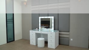Step into a world of glamour with this sleek and chic vanity set, a perfect fusion of functionality and fashion. Its glossy finish and clean lines are complemented by the sparkle of crystal-like knobs, adding a touch of sophistication to your personal space. The spacious tabletop, graced with a large mirror surrounded by radiant lights, offers an ideal stage for beauty routines, ensuring flawless makeup application under impeccable lighting. With a variety of drawers, this vanity provides ample storage to keep essentials organized and within reach. The stool with its luxurious upholstery provides a comfortable seat that rounds out this vanity set, making it a must-have for those who appreciate a touch of luxury in their daily life.