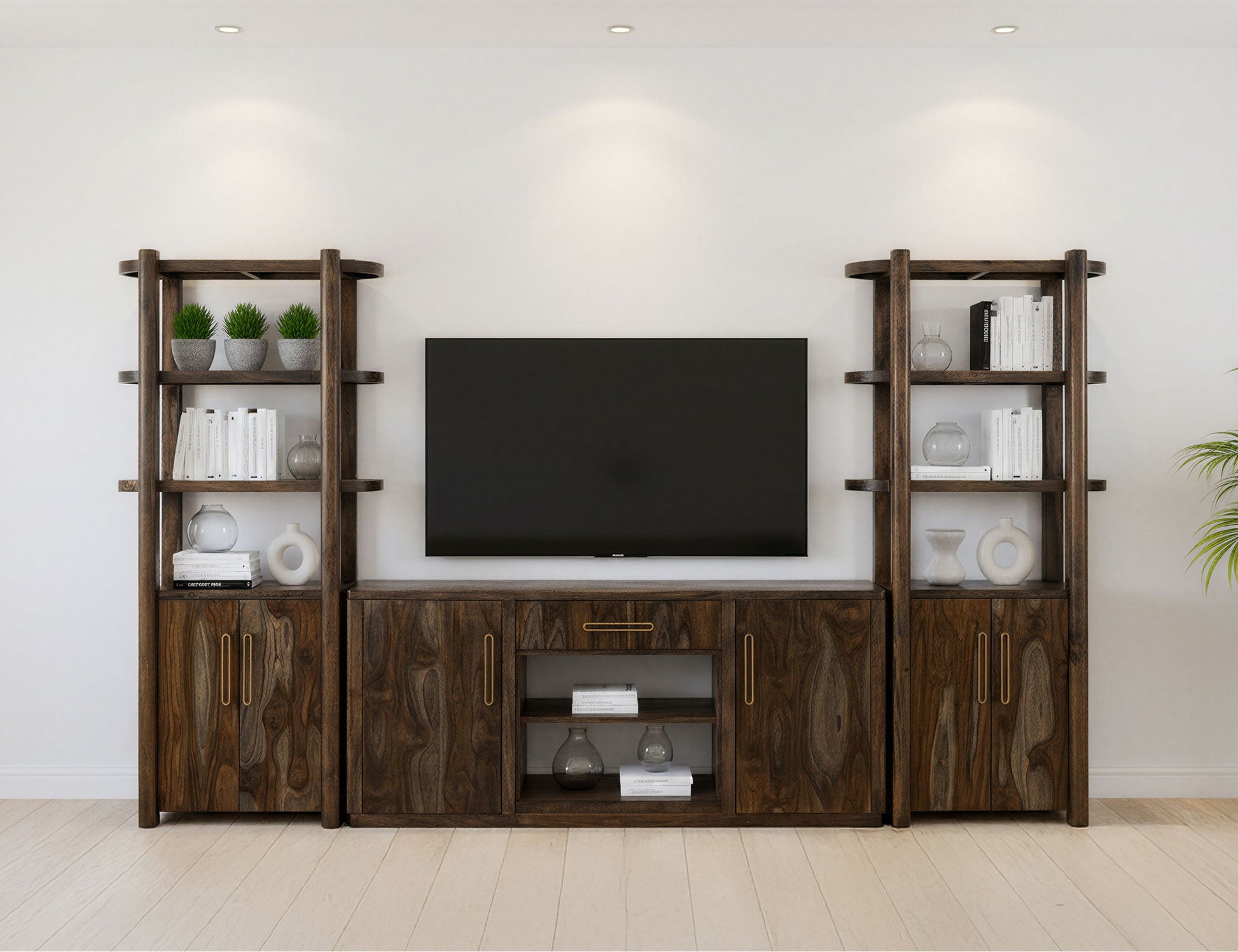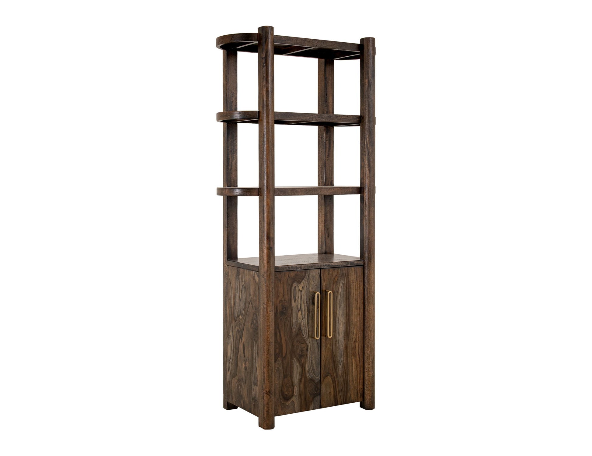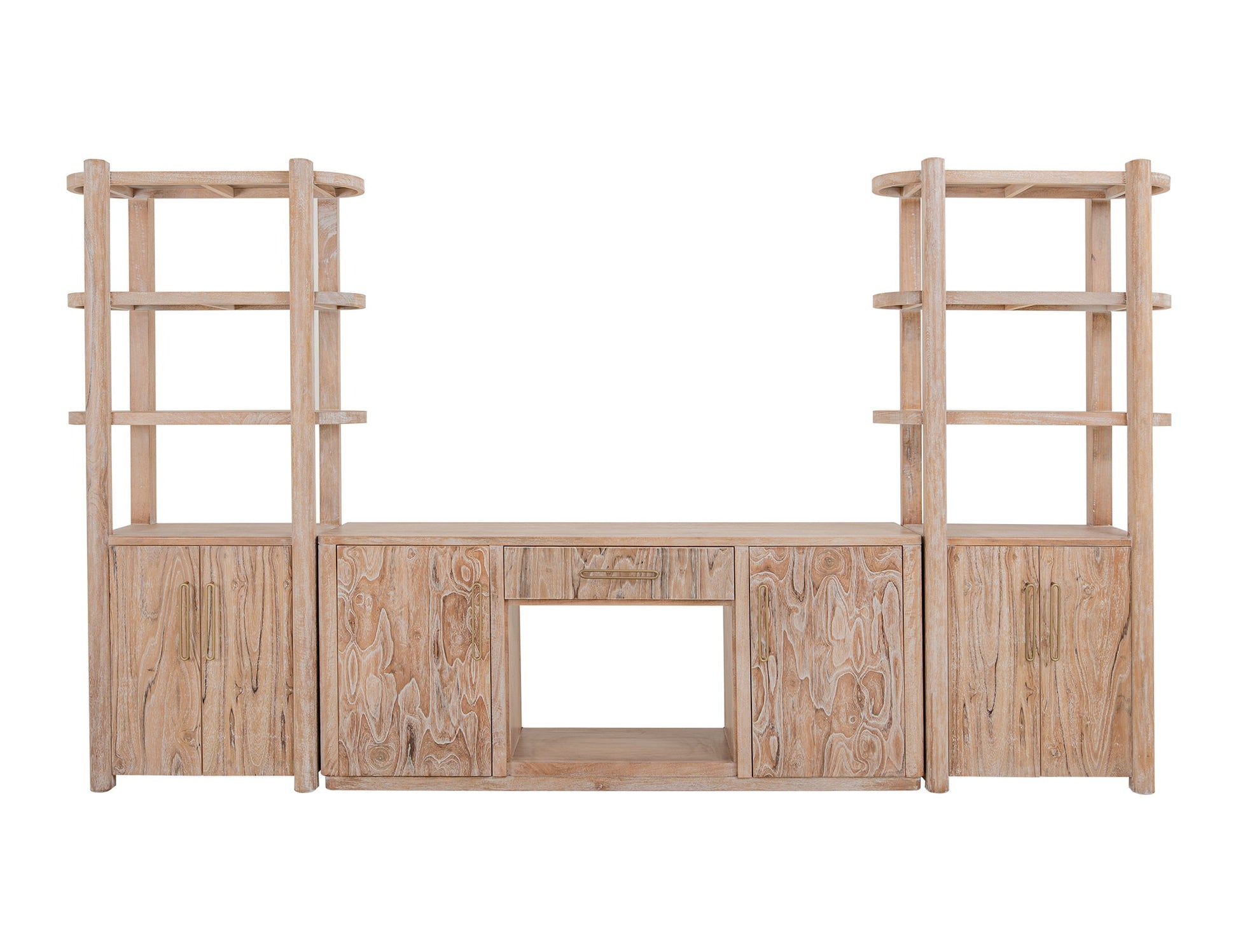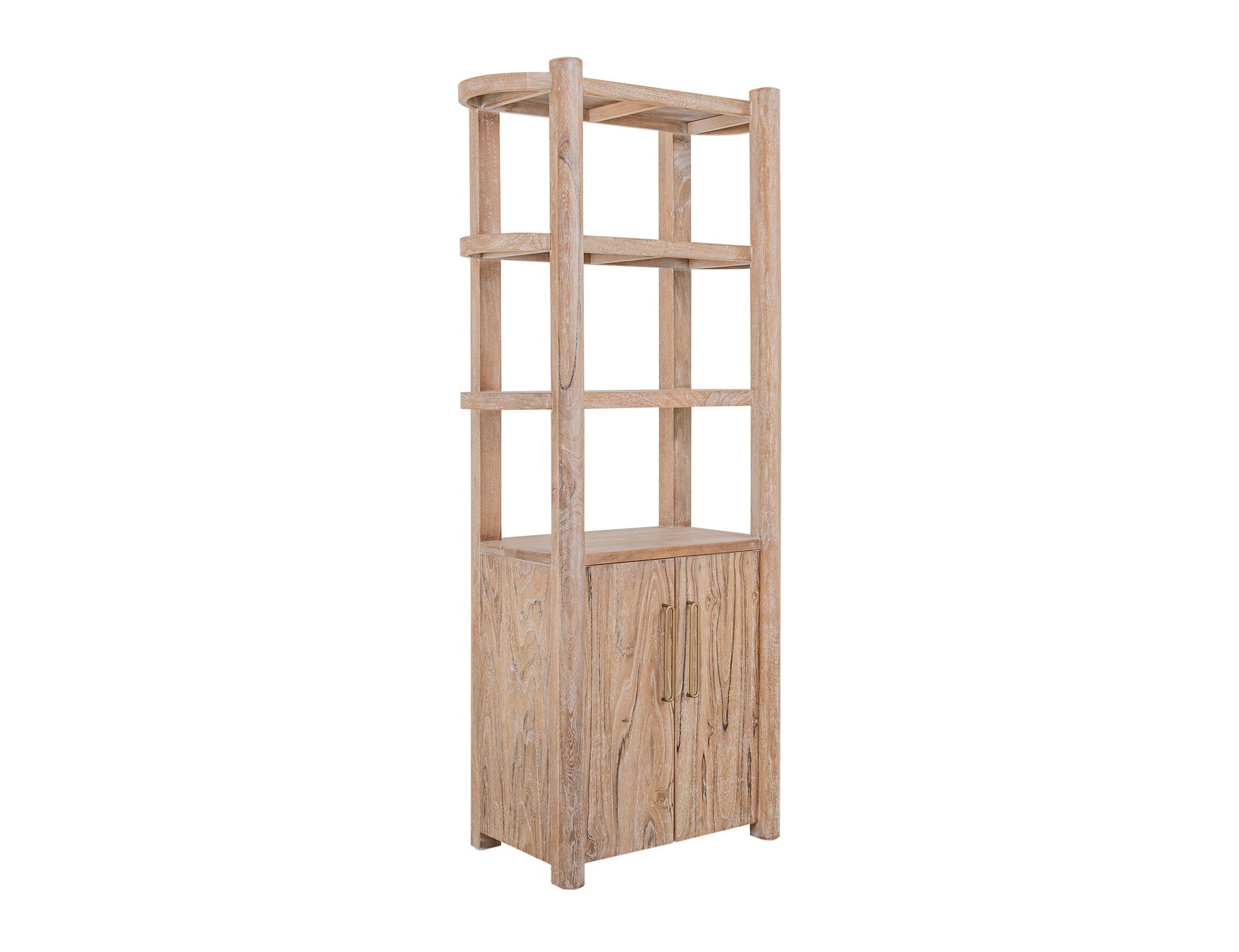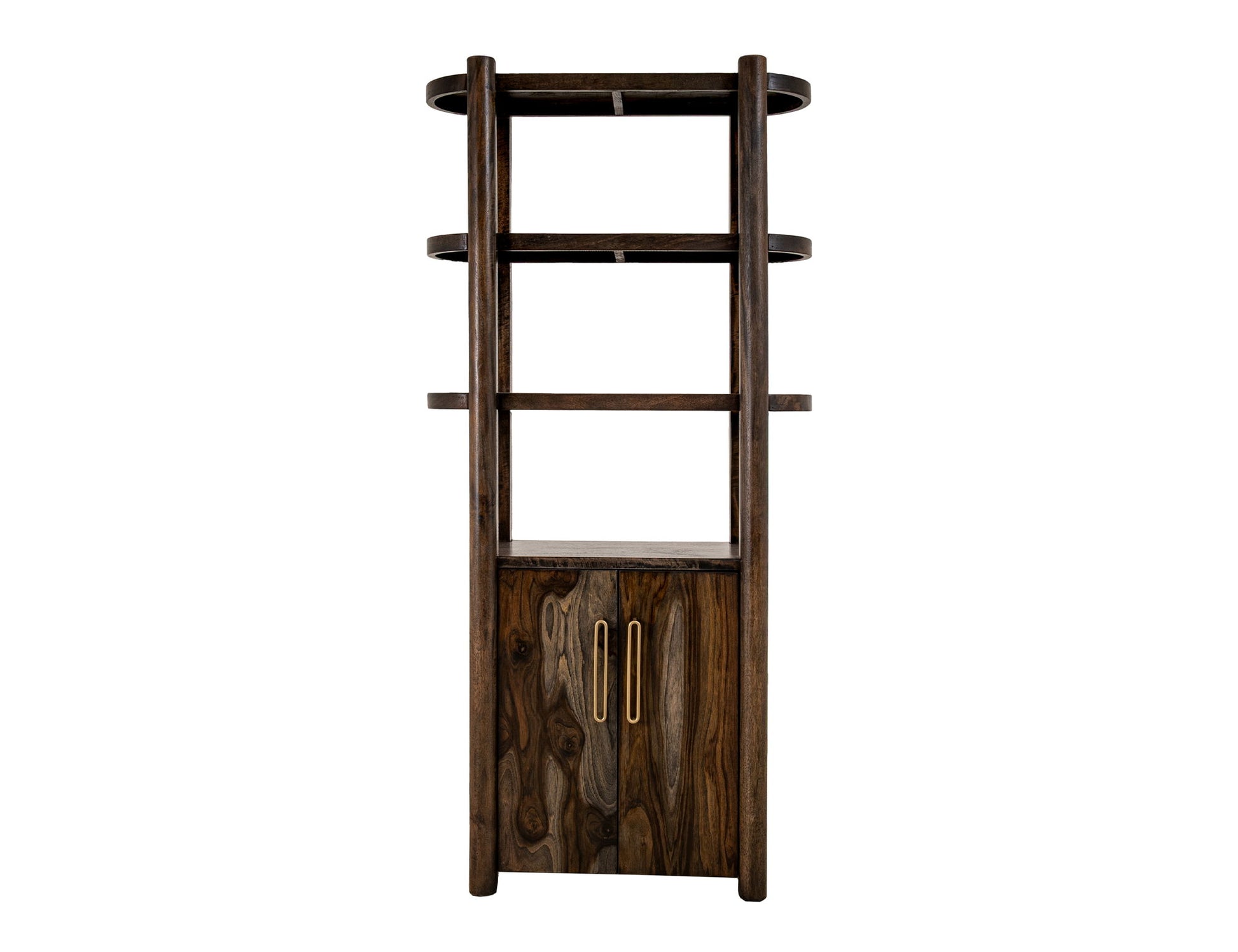 2 Door, 3 Shelf Pier. Our exquisite Balam collection is meticulously handcrafted using high-quality mango and teak wood. This simple yet striking collection is designed to infuse your space with an organic, modern aesthetic. It boasts a unique organic shape, featuring elegantly curved oval shelves at the top and storage cabinet, adding a touch of sophistication to any room.