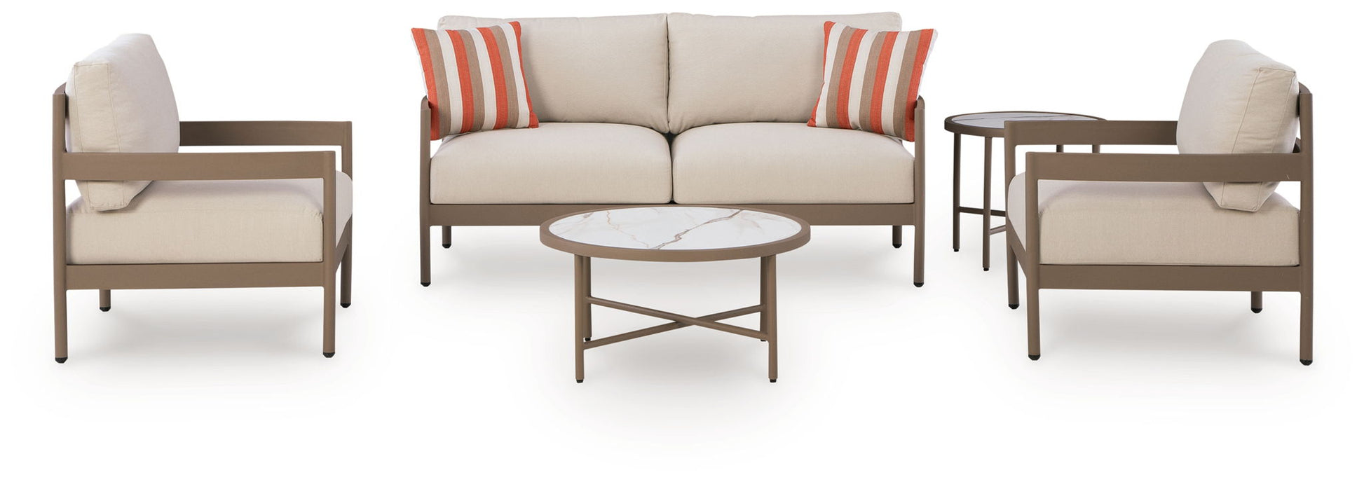 Big Creek Cove - Loveseat, Lounge Chairs, Tables Set (Set of 5) - Beige
