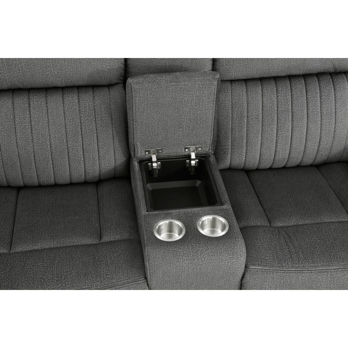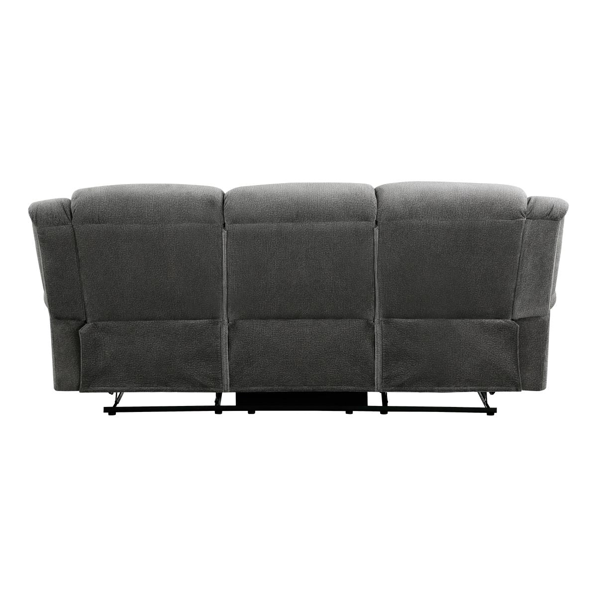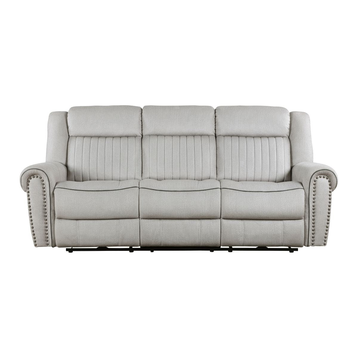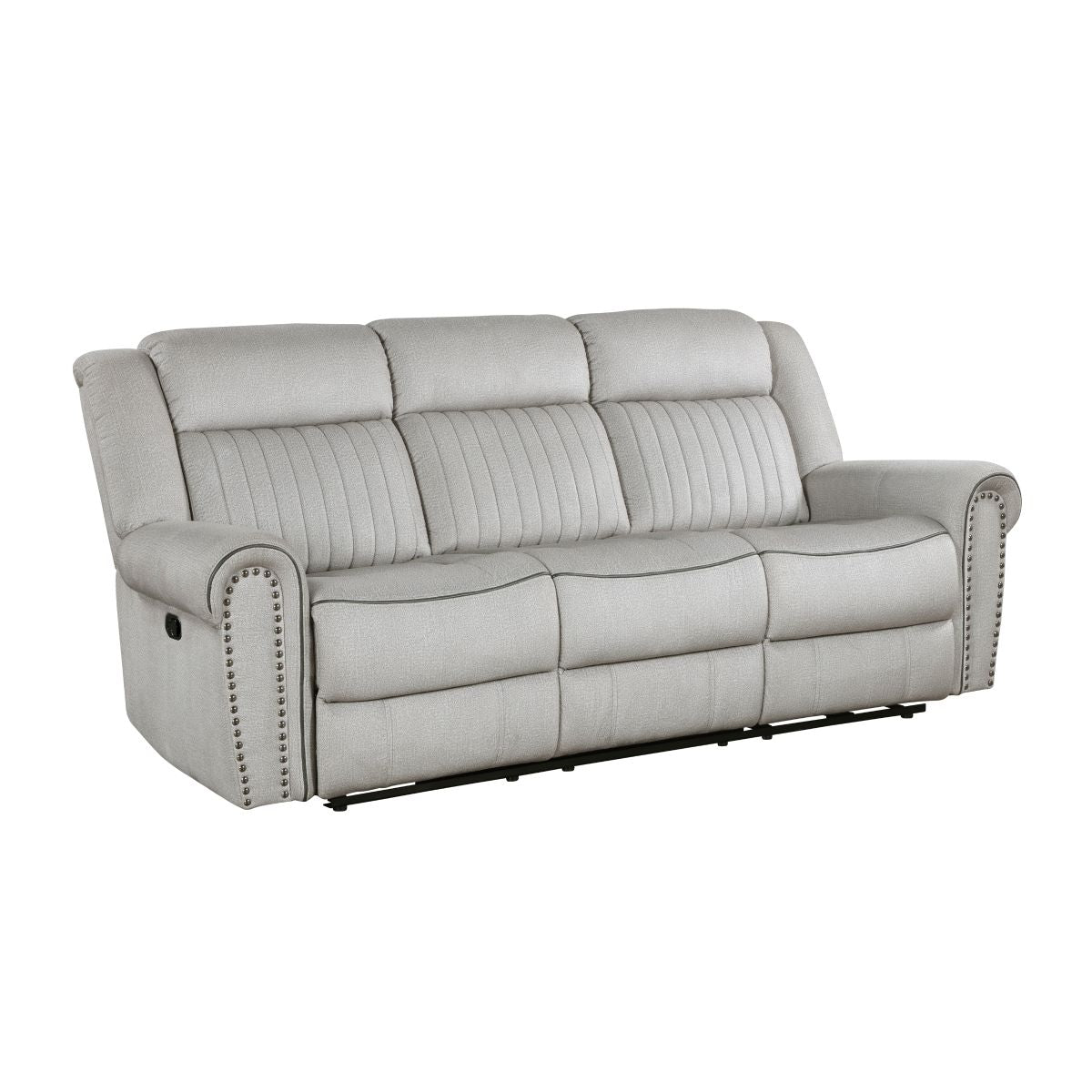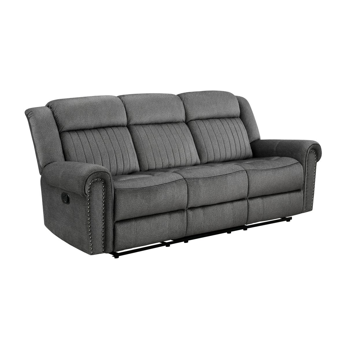 Styled for the transitional home, the Brennen Collections comfortable presence will be a perfect match for your casual living room. The sofa, love seat, and chair of the collection feature manual reclining mechanisms allowing for ease of motion when going from seated to reclined. Additional functionality comes in the form of the consoles love seat, its lift-top hidden compartment and cupholders providing a convenient spot for beverage and accessory storage. Plush contoured seating is defined by the contoured stitching, while the arms of the collection are accented with nail head trim. Textured microfiber covers the seating group, providing soft touch and decorative versatility.