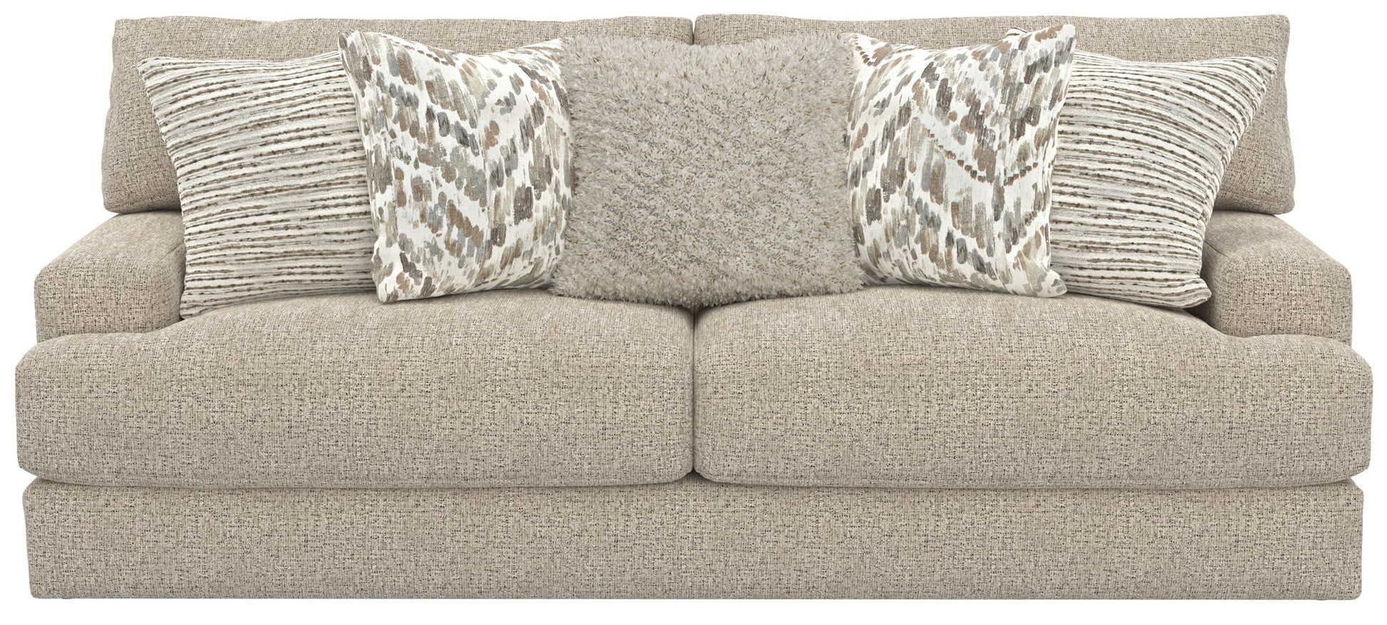 Brett features the ultimate comfort of our Cuddler Cushion and offers a mix of toss pillows in a variety of colors and textures - including a luxurious "fil coup��" (or "cut threads") treatment. This stationary sofa group is available in your choice of two colors: Lotus or Honey.
