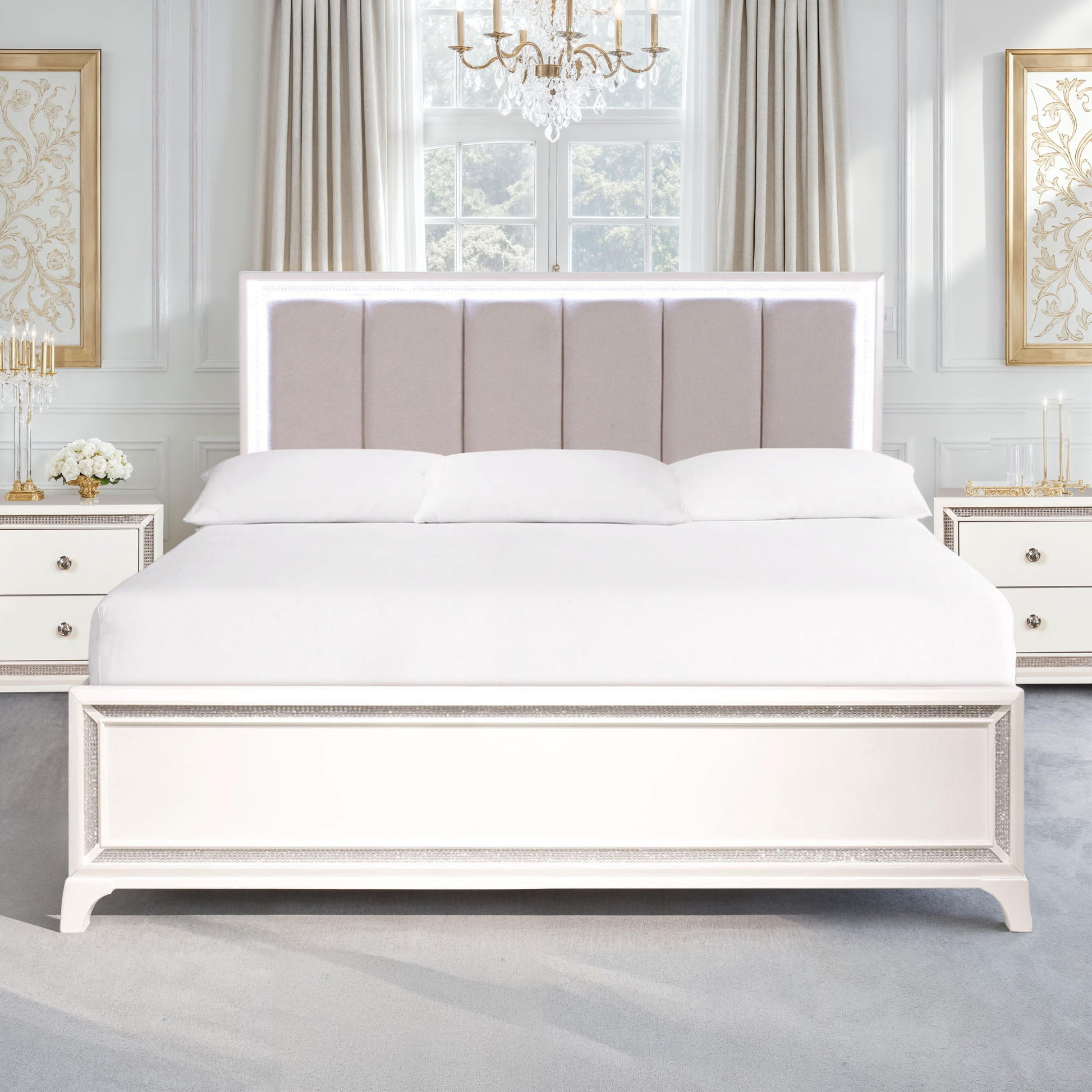 - The headboard and footboard are accented with crystal in-laid borders tjhat sparkle with glam elegance. The headboard illuminates with a warm glow at the flip of a switch, creating an enchanting and inviting atmosphere.