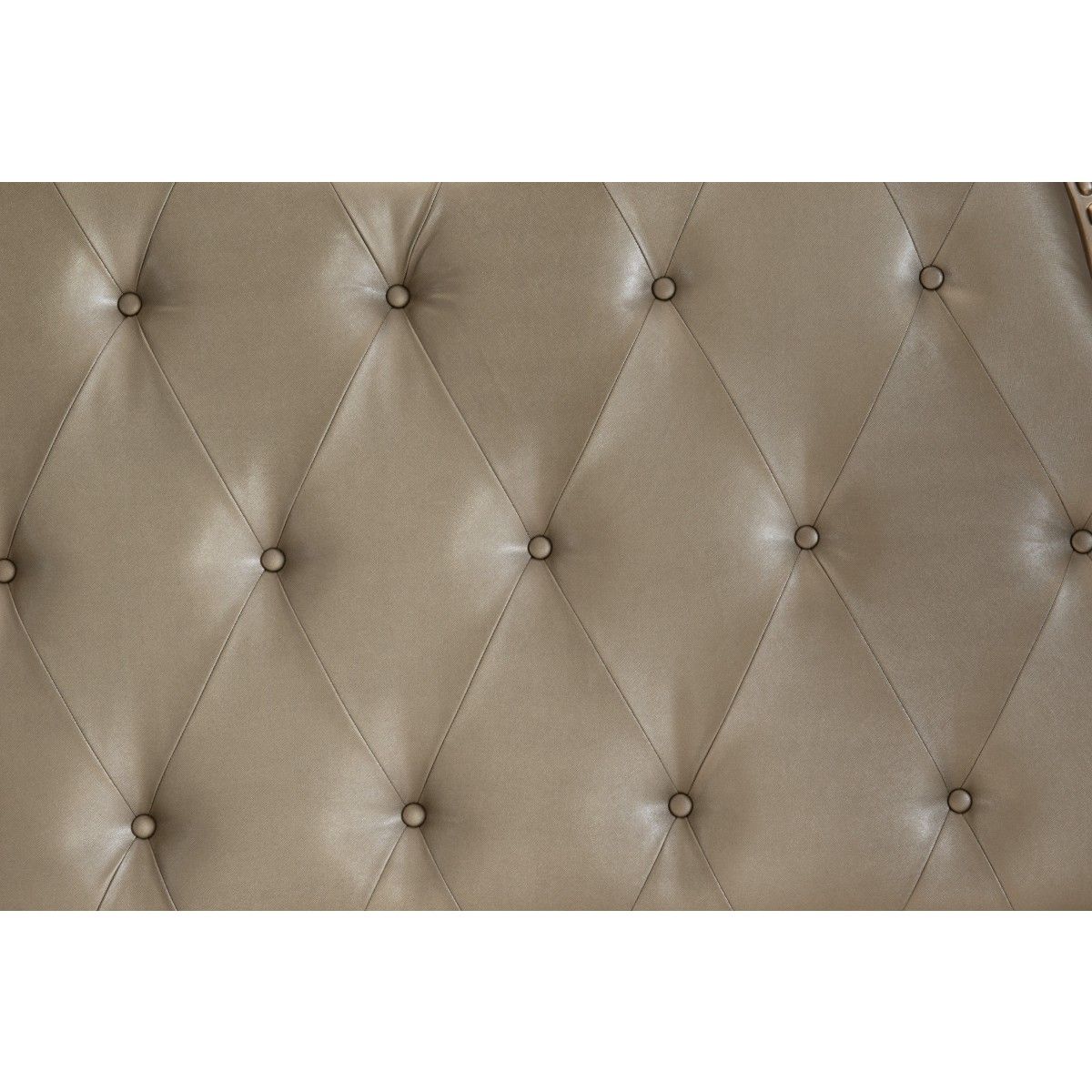 The Cavalier Collection exemplifies the finest in Old World European design inspiration. Egg and dart base moldings, bead molding and acanthus leaf carvings all blend to achieve an elegant addition for your traditional bedroom. The grand sleigh bed features a faux leather, button-tufted headboard insert. The beds beautiful details are accented by the finish on birch veneer.