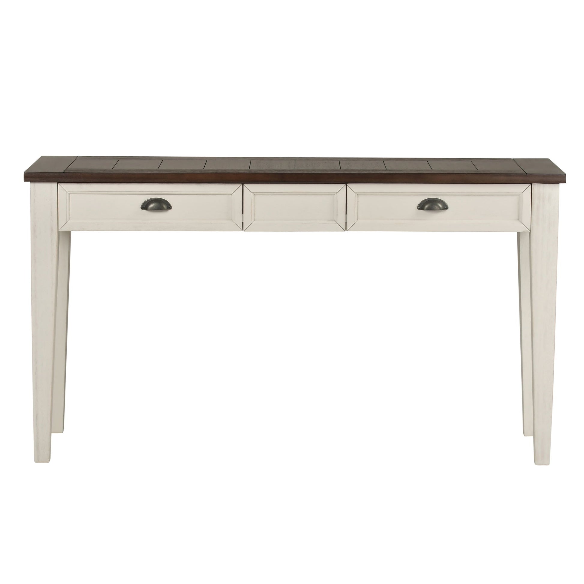 Steve Silver Company harmoniously blends elements of contemporary and cottage styling to create a modern farmhouse look with the Cayla occasional collection. The tables feature a two-tone finish of antiqued white base with dark oak top and each table features a drawer with cup drawer pull that gives the collection a vintage look white offering valuable storage.