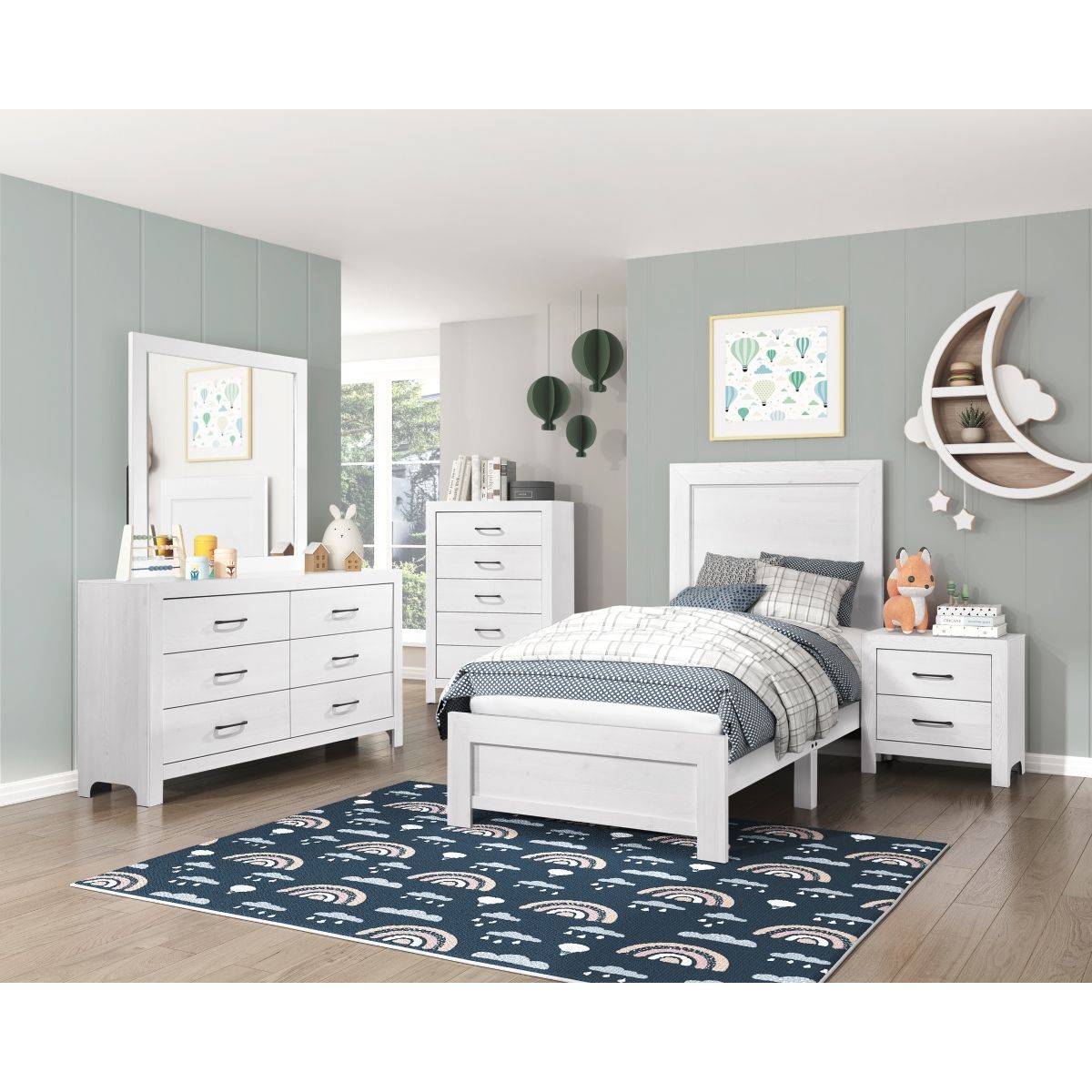 Modern lines and rustic styling are paired to create the look of the Corbin Collection. The embossed faux-wood veneers texture is highlighted by a rustic finish for a realistic wood look. Subtle framing defines the profile of the mirrors frame, further lending to the unfettered design of the collection.
