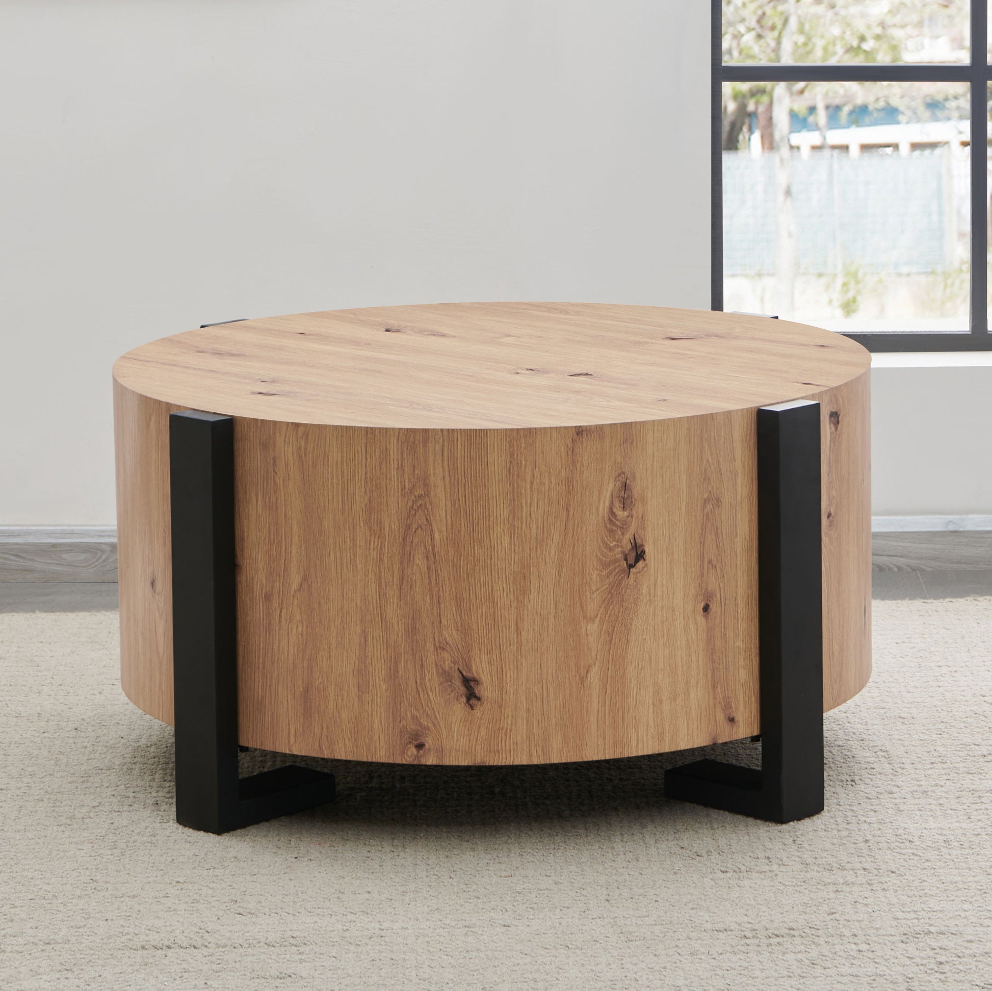 Darcie - Faux Wood Round Cocktail Table - Tan