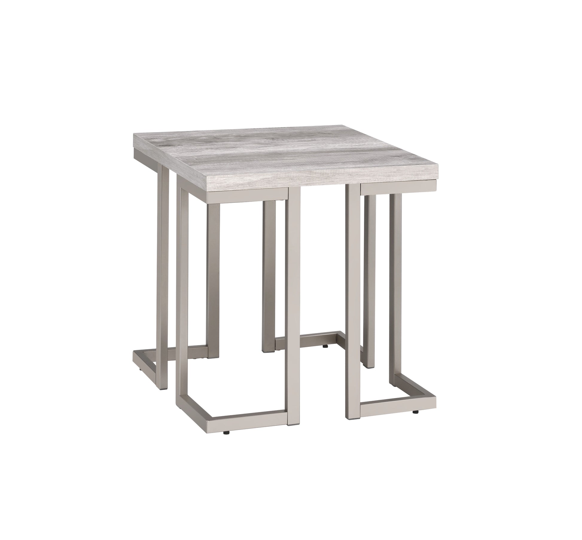 Refined rustic style comes to your living room with David occasional tables from Steve SIlver Company. The contemporary styled matte pewter colored base features an interesting geometric shaped base that combines with the Silvershield® driftwood colored top to create a table collection comfortable in today's neutral environments. Choose from cocktail or end table.