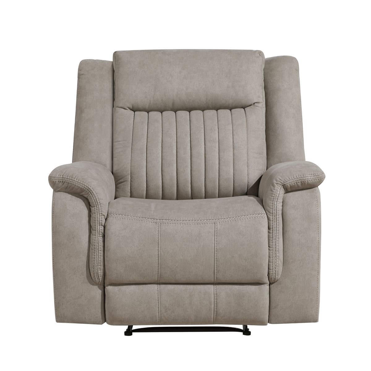 Indulge in luxurious comfort with our stylish and supportive recliner, designed to elevate any living space. Upholstered in a smooth, polished microfiber fabric and accented with elegant stitching, this recliner offers both sophisticated style and exceptional durability. Sink into the generously padded cushions featuring foam over individual pocket coils, providing superior support and resilience for ultimate relaxation. The easy-to-use tab pull mechanism allows for effortless reclining, inviting you to lean back and unwind. Built with a robust solid wood and plywood frame and a metal-reinforced seat, this recliner ensures long-lasting stability and supports up to 300lbs, making it a perfect addition to your home for years to come.