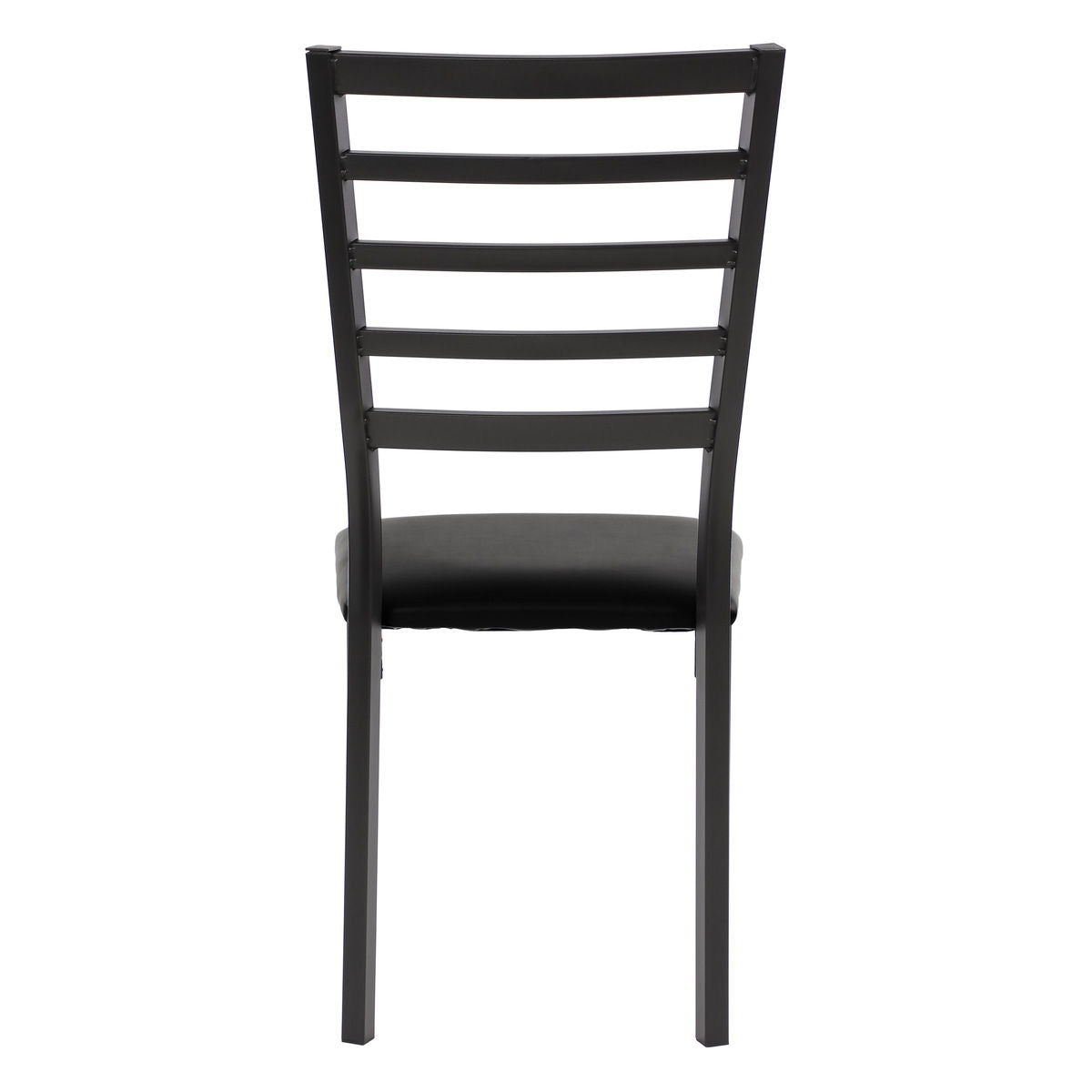 With a scale appropriate for any number of smaller dining spaces, the Flannery Collection will provide the look and style you want in your home. The transitional feel of the ladder-back chair comes from the contrast of the black finish of the frame and the black faux leather seat.