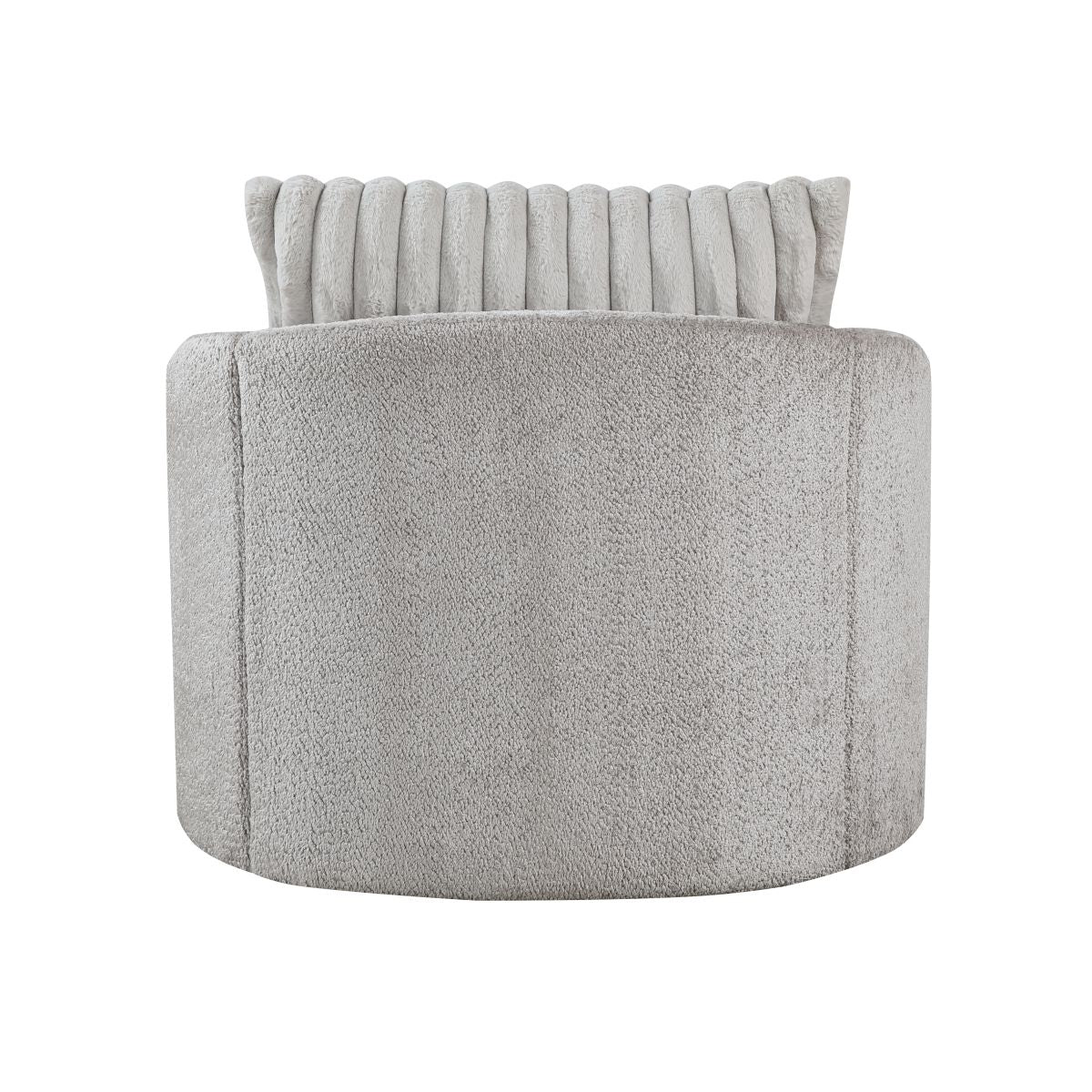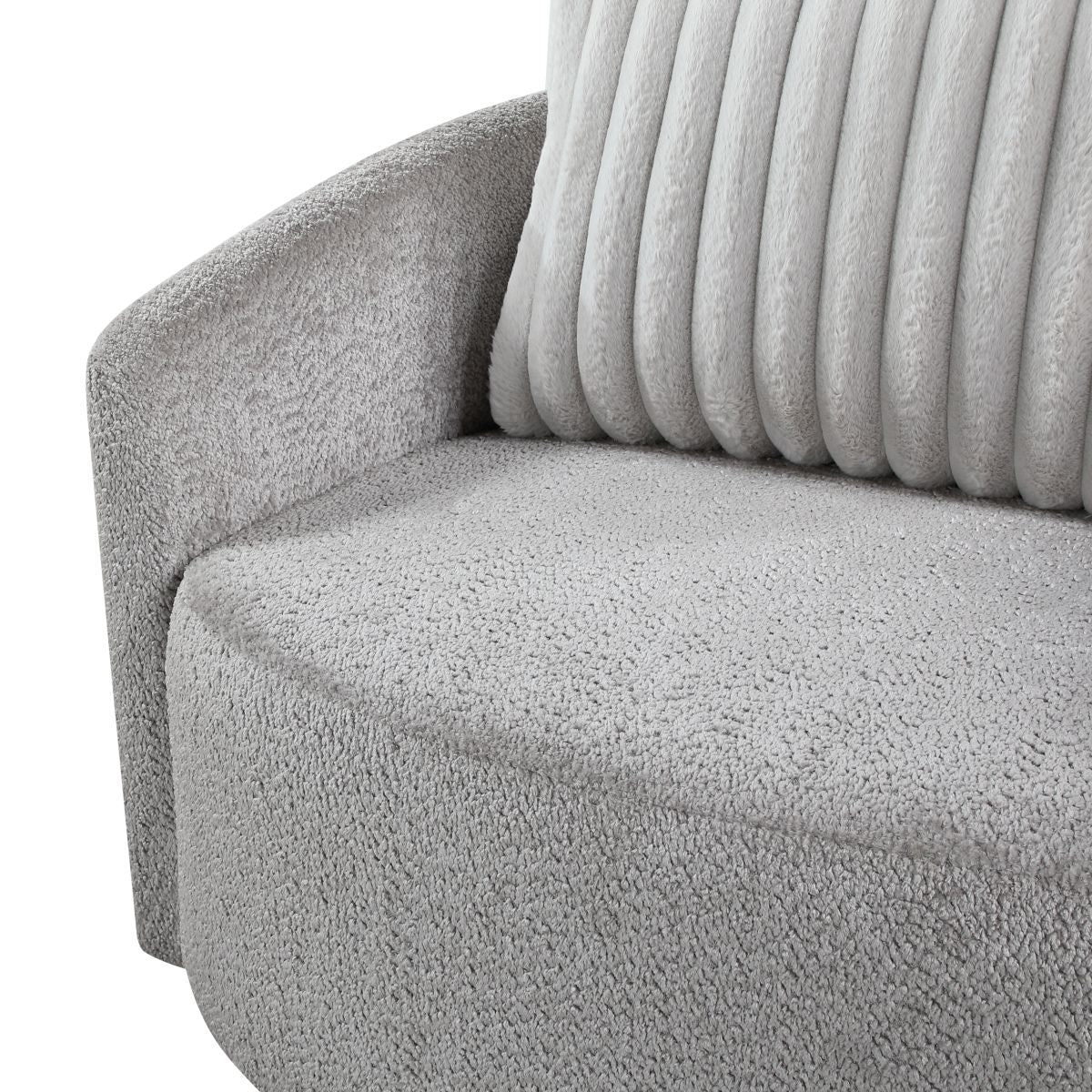 Enhance your living space with this spacious modern Francine Swivel Chair upholstered in soft gray chenille fabric, perfectly complemented by a plush corduroy back pillow for added texture and comfort. Designed for both style and versatility, this chair features a 360-degree swivel, allowing you to move with ease while enjoying ultimate relaxation. Ideal for living rooms, reading nooks, or home offices, this swivel chair combines sleek design with practical functionality.