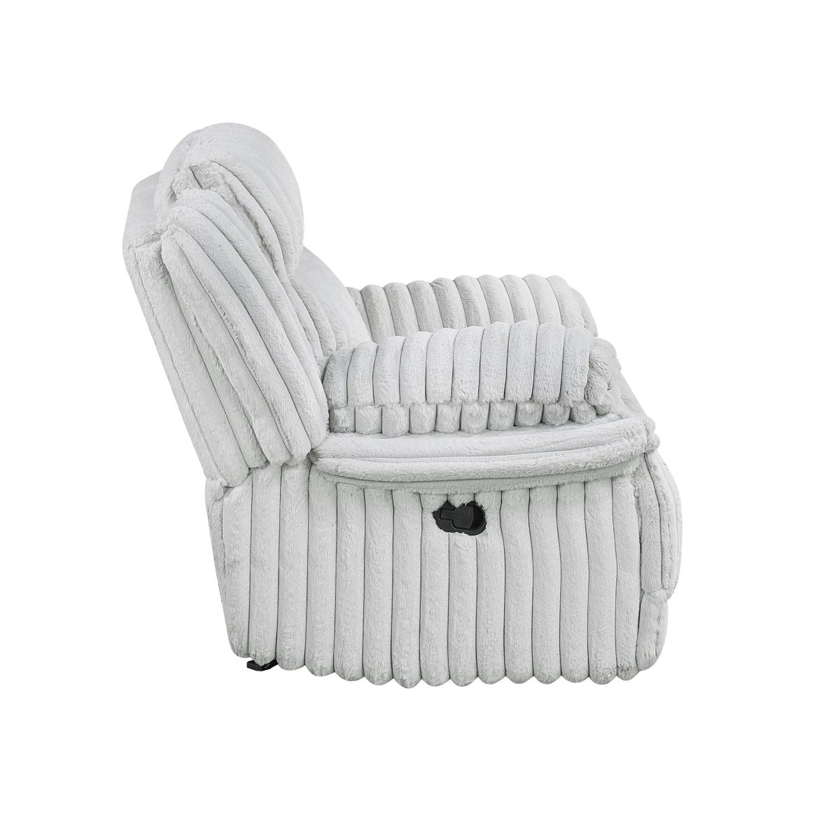 Experience luxurious comfort and effortless relaxation with this oversized manual glider recliner, designed for plush seating and smooth gliding motion. Featuring a pull-tab reclining function, deeply cushioned seating, and extra-wide pillow-top armrests, this recliner provides exceptional lumbar and full-body support for the ultimate lounging experience. Upholstered in ultra-soft ribbed corduroy fabric, it adds a trendy, cozy aesthetic to any living space. The smooth gliding mechanism allows for gentle motion, making it perfect for nurseries, living rooms, or home theaters. Built with a sturdy metal seat frame and reinforced reclining system, this recliner ensures long-lasting durability and seamless operation, creating the perfect spot to unwind and relax.
