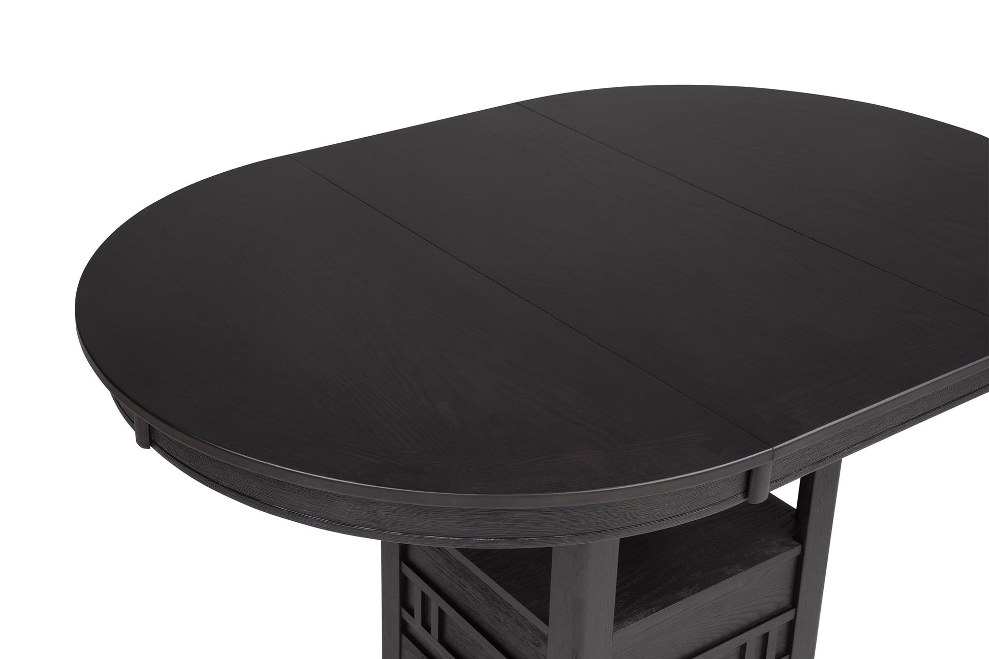 Upgrade your dining space with this sophisticated counter-height dining set, designed to combine modern elegance with everyday functionality. The sleek, round table features a removeable leaf and a open shelf base, offering both style and convenience. Perfect for maximizing space, its elevated design creates an open and inviting atmosphere. The matching counter-height chairs boast a chic lattice-back design and plush upholstered seats, ensuring comfort and support during every meal. Ideal for contemporary or transitional interiors, this set brings a refined yet casual charm to any dining area, making it perfect for intimate gatherings or stylish entertaining.