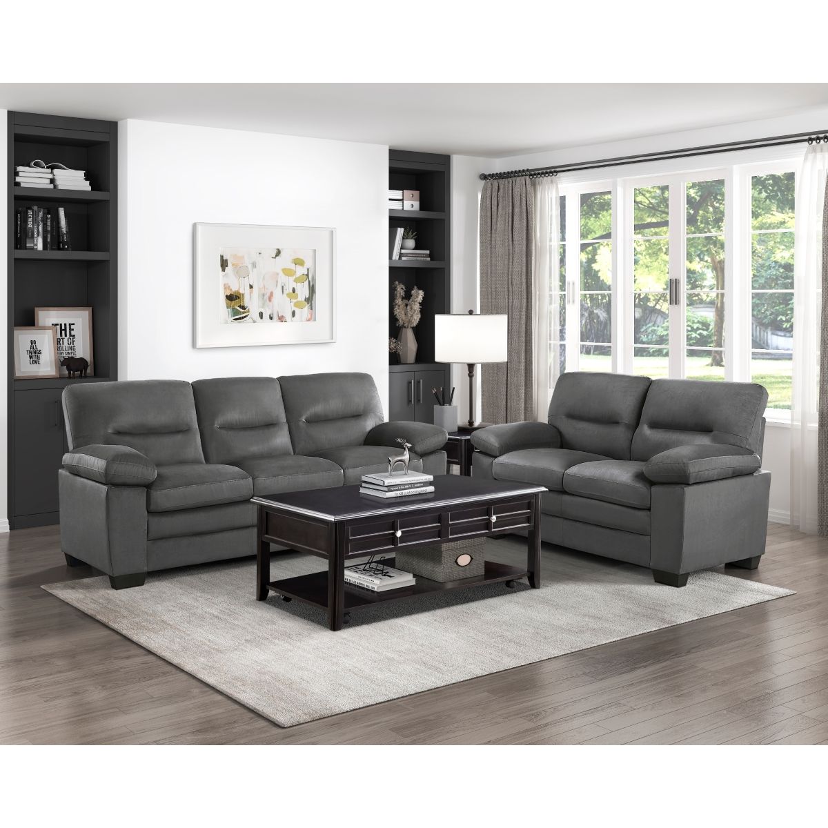 The sleek profile of the Keighly Collection will be the perfect complement to your modern living room. The love seat features a fabric cover for the ultimate decorative versatility, while pillow-top arms and plush seating create a platform that is perfect for your comfortable seated relaxation.