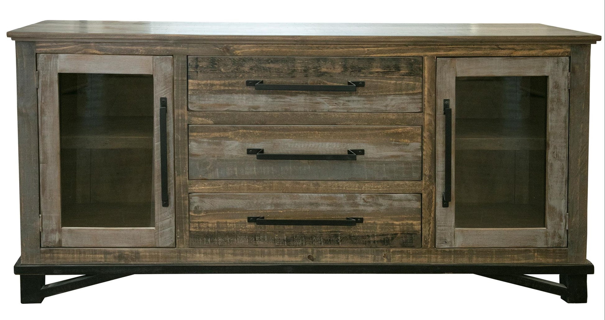 3 Drawer 2 Door Buffet. The Loft Brown Collection is constructed using pine wood that has been hand-stained and distressed, complemented by hand-forged iron hardware. This beautiful collection features a wide range of high and low finish colors, making it a striking addition to any room décor you choose to design.