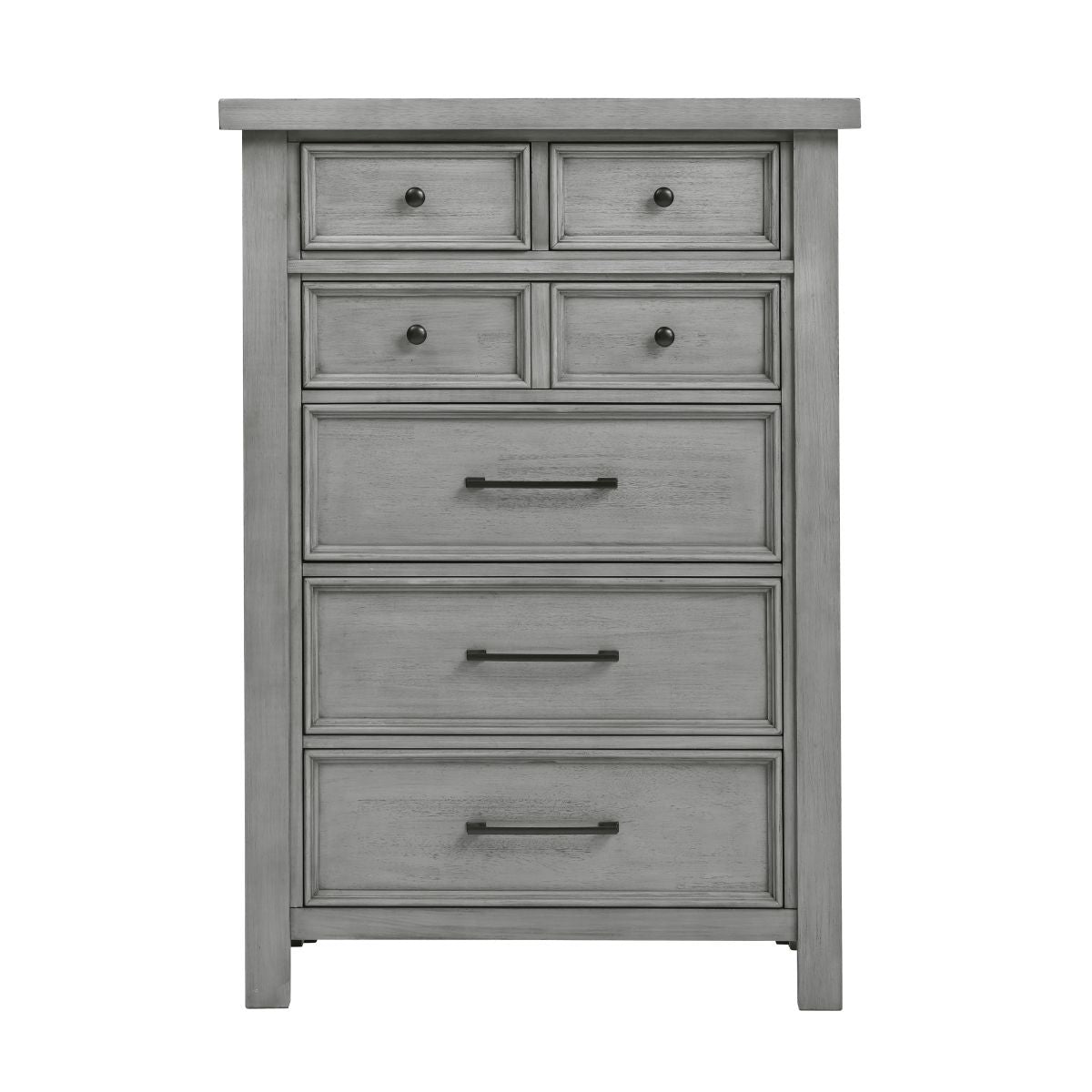 The transitional framing of the Logandale Collection allows for versatile placement within a number of classic bedroom decors, making a perfect choice for your home. A finish is utilized over mango veneer for subtle highlighting of its distinct grain. Dark finished metal knob and pull hardware front each drawer of the chest, creating a complementing accent to the collection.