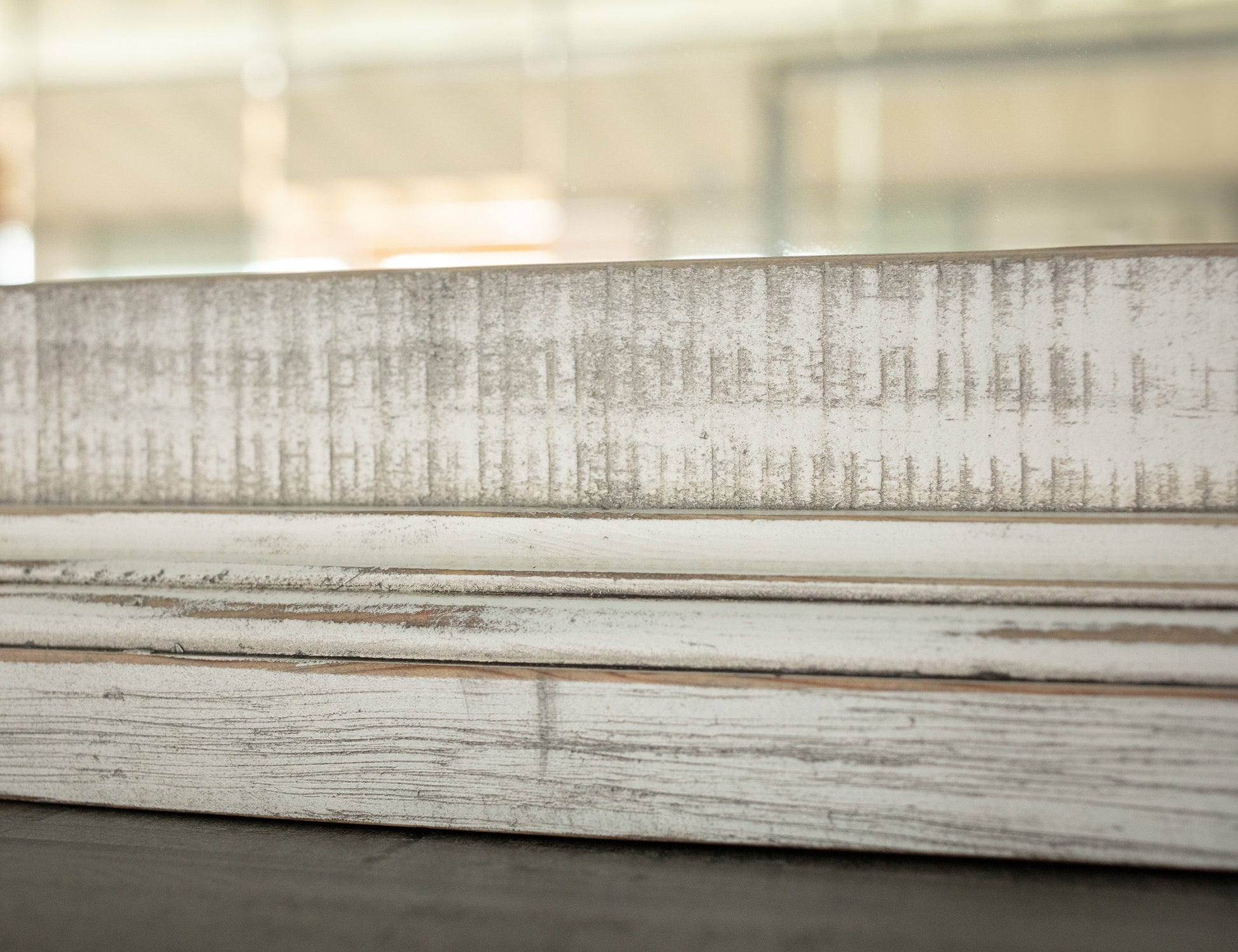 Bedroom Mirror. Introducing the transitional two-toned Luna collection. Crafted from pine wood, this collection boasts a sleek, clean-line silhouette, perfect for complementing any space.
