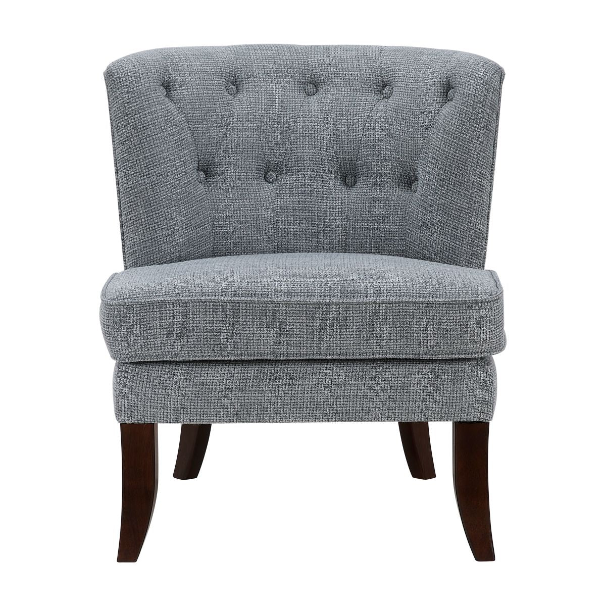 Add a touch of classic elegance to your home with this beautifully tufted accent chair. Featuring a traditional silhouette and delicate button tufting, this chair exudes sophistication and charm. The soft, textured fabric upholstery complements a variety of interior styles, while the generously cushioned seat provides exceptional comfort. Sturdy dark wood legs add a touch of contrast and stability, making this chair a perfect addition to your living room, bedroom, entryway, or dining area. Enhance your space with this versatile and stylish accent piece that seamlessly blends timeless design with modern comfort.