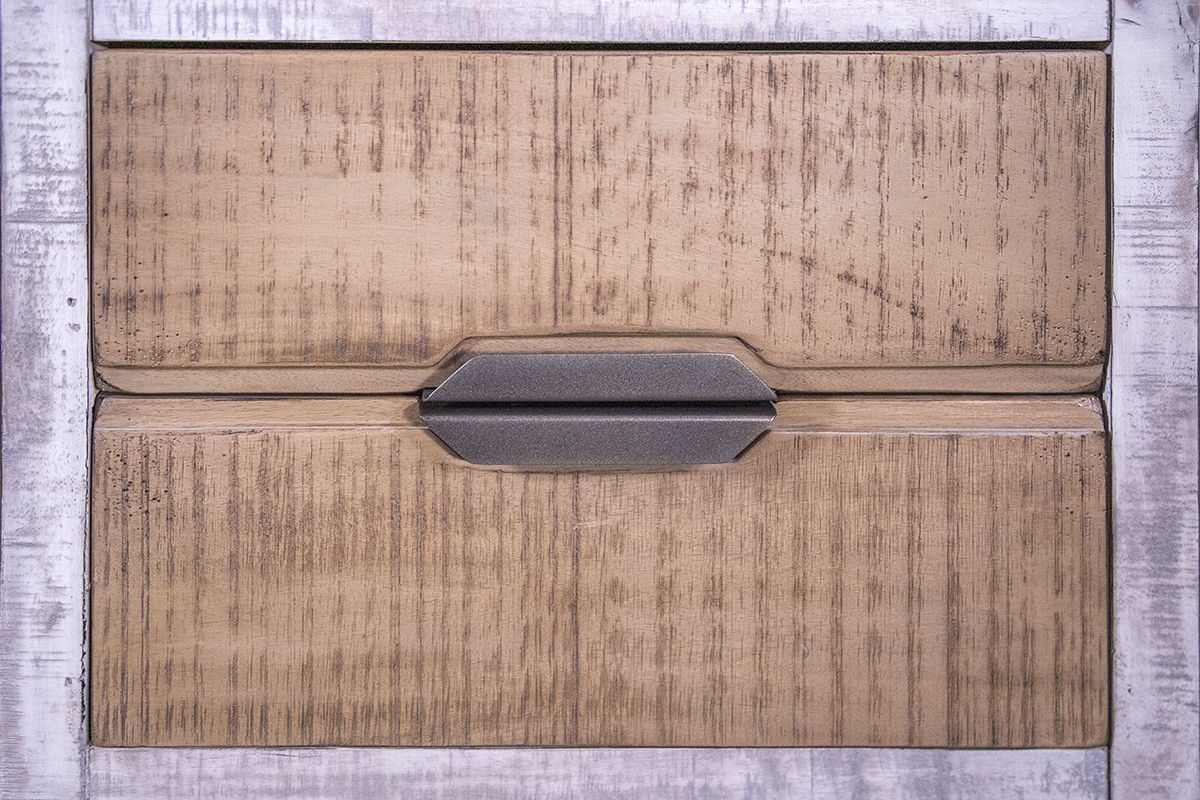 1 Drawer Chairside Table. Drawing inspiration from transitional design, the Mita collection seamlessly blends metal and wood elements. This exquisite collection is meticulously crafted from sustainable mango wood, skillfully hand-distressed to achieve a captivating finish.