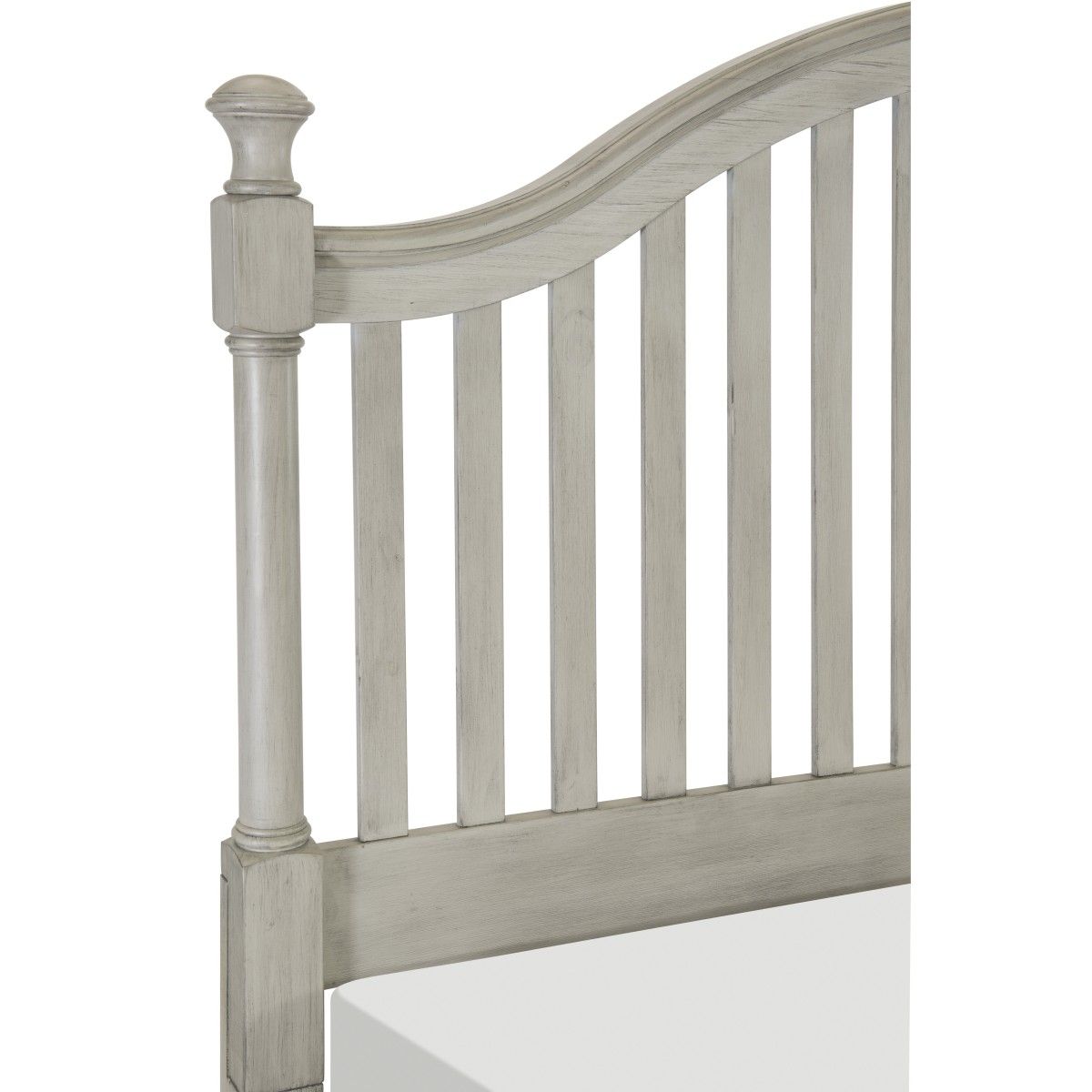 In nod to modern farmhouse design, the Mossbrook Collection features a classic profile that will be a perfect addition to your homes dcor. The pine solids and oak veneer of the collection feature a light gray finish, subtly highlighting the woods grain. The vertical slats of the low-post bed lend classic styling to the collection, their heights following the curved profile of the headboard and footboard, each corner topped with a turned finial.
