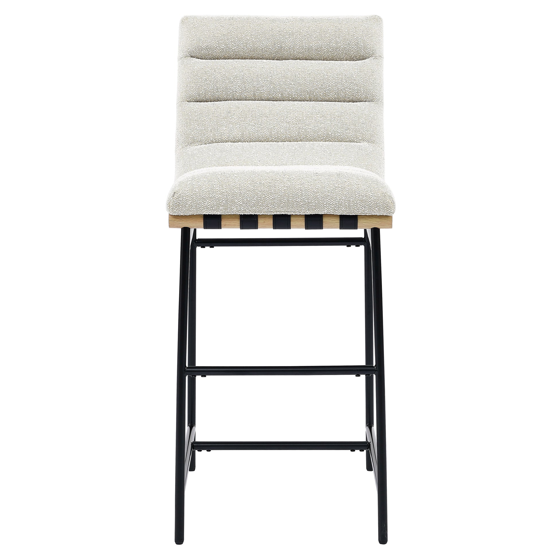 The Nicco 30" Bar Stool elevates your counter space, perfectly blending modern design with a comfy cushioned seat. Designed for 42-inch high counters, this chair features a 30-inch high cushioned seat and back with a sleek channel design, upholstered in easy-care colored that complements any décor. The webbed seat suspension provides "floating" comfort, while the durable iron frame, reinforced with side and cross stretchers, ensures lasting stability. The Nicco Bar Chair delivers style and function in one sophisticated package.