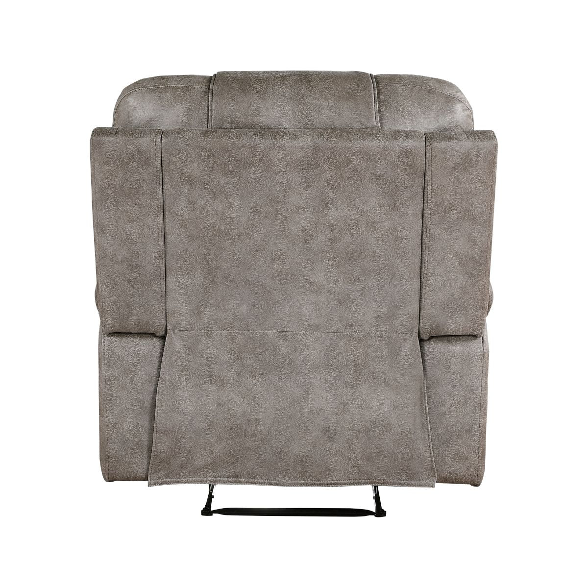 A subtle modern profile is combined with plush seating to create the design of the Oberon Collection. The reclining chair allows for solo seating within your space. A manual motion mechanism allows for your reclined experience and is engaged with a pull of the side mounted tab. Polished microfiber covers the collection, its neutral hue offering a warm balance to your living rooms dcor.