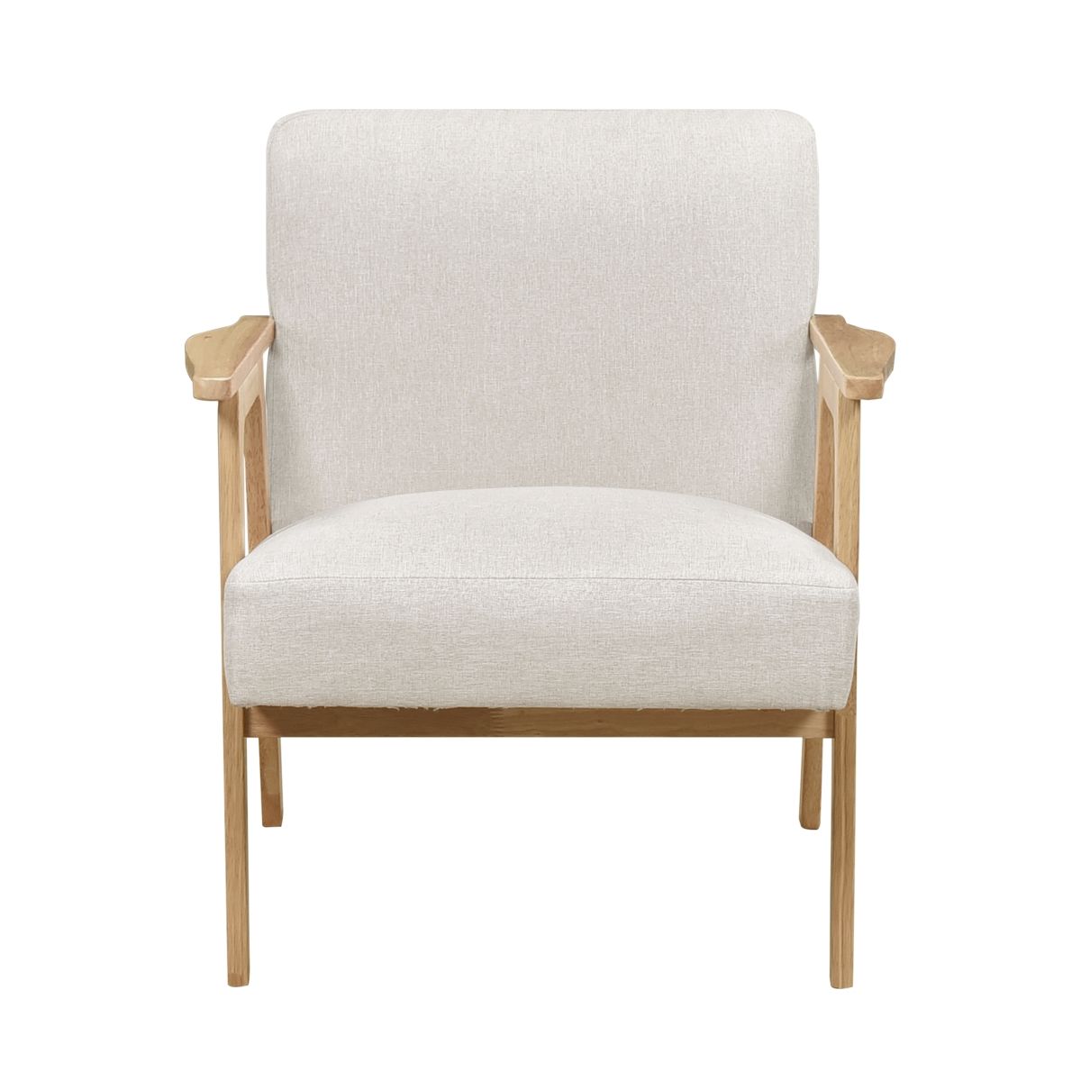 Bring a touch of refined mid-century style to your home with this elegant Wood Arm Accent Chair. Featuring a solid wood frame with a beautiful natural finish, this chair embodies the clean lines and minimalist aesthetic of the era. The soft, textured linen fabric upholstery in a neutral tone complements any interior design, offering both comfort and sophistication. With its generously cushioned seat and back, this chair is perfect for relaxing after a long day or adding a stylish focal point to your living room, bedroom, or office. Enjoy the blend of classic design and modern comfort with this versatile accent piece.