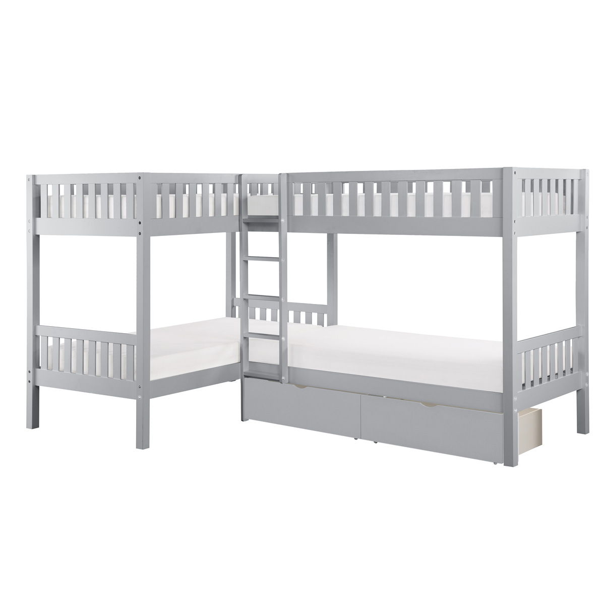 Orion - Corner Bunk Bed With Storage Boxes - Gray
