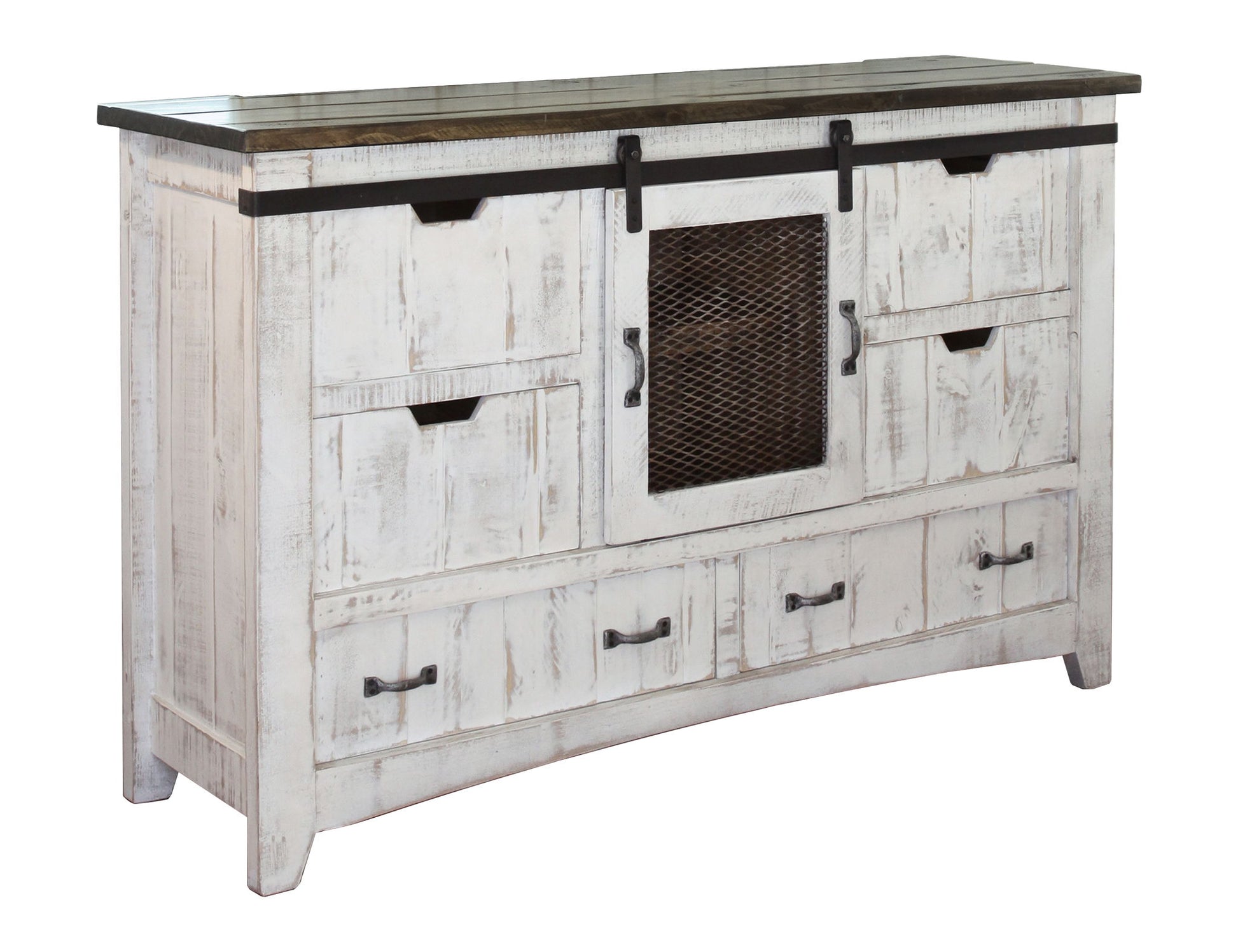 6 Drawer 1 Door Dresser. Introducing our Pueblo Gray collection, crafted from solid pine wood. This rustic collection is the perfect addition to bring your dream space to life. It features a hand-distressed finish on the tops.