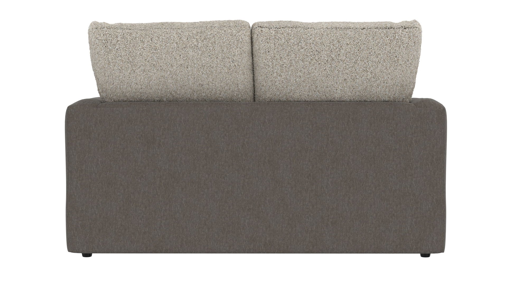 Reddington is a stationary sofa group that features the ultimate comfort of our Cuddler Cushion. This dual-fabric application is accented with an ecelectic mix of toss pillows in a variety of textures - including sphere pillows in a luxurious faux fur. Reddington includes a convenient Cocktail Ottoman and is available in one color combination: Slate/Fawn.