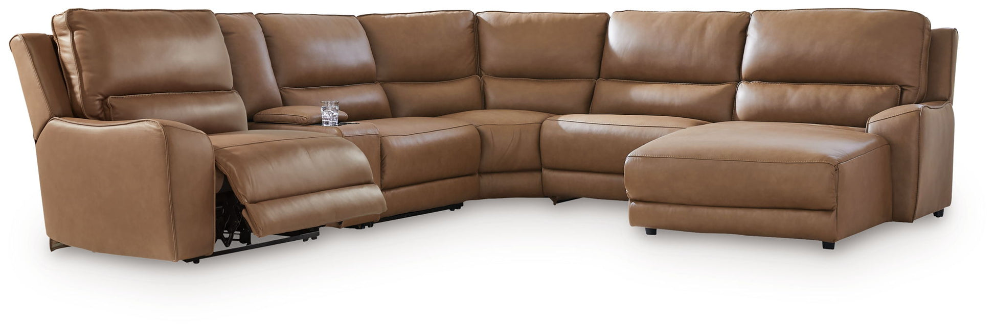 Silverbrooke - 6-Piece Power Reclining Sectional With RAF Press Back Power Chaise And Storage Console - Caramel