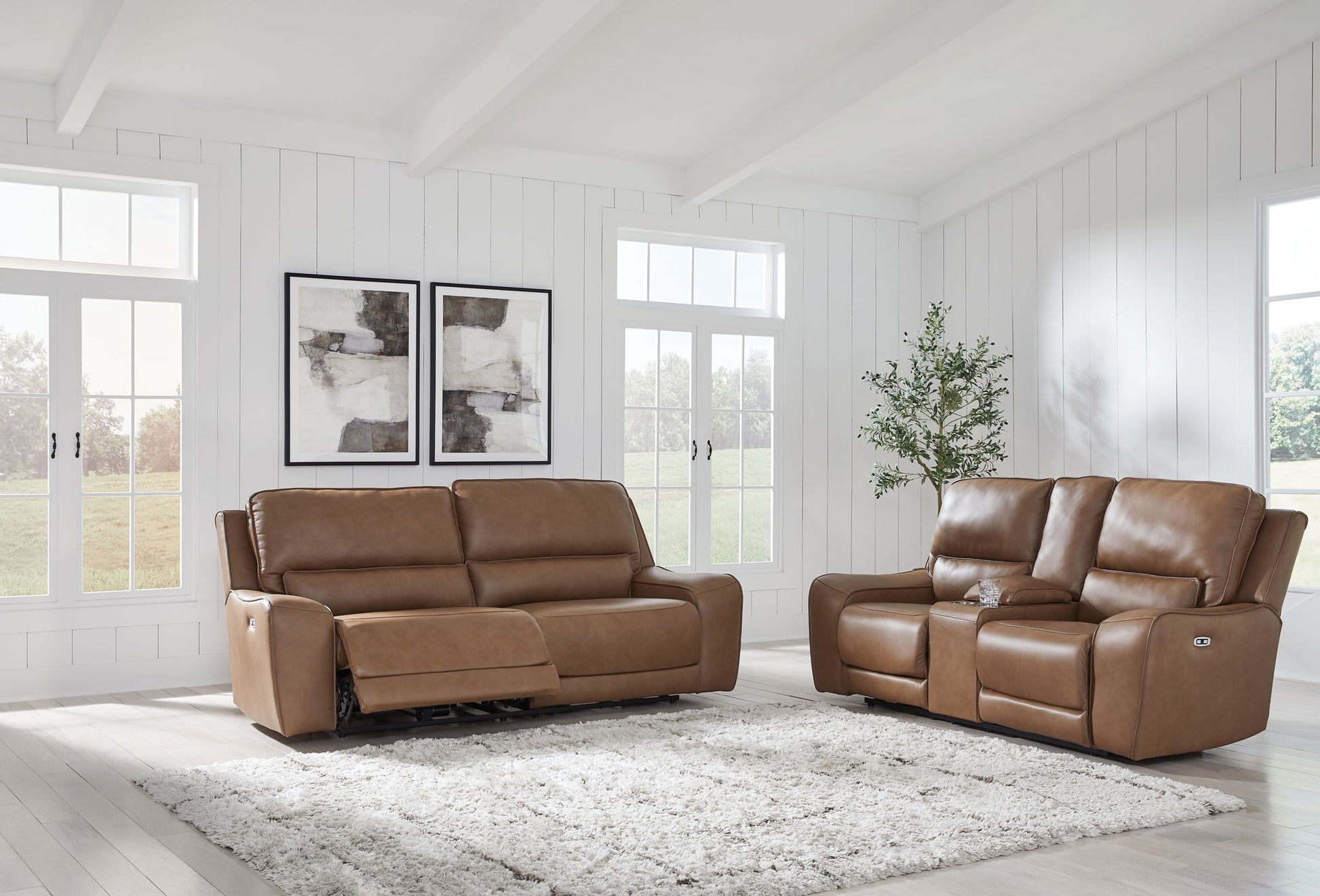 Live and lounge luxuriously. This power reclining seating package brings an ultra-stylish flair to your home’s central hub. Its seating areas are wrapped in top-grain leather in a rich coloration, giving you a trend-right look made all the better with high-quality materials. And with the simple push of a button, you can recline or adjust the headrests to find your ideal comfort position.