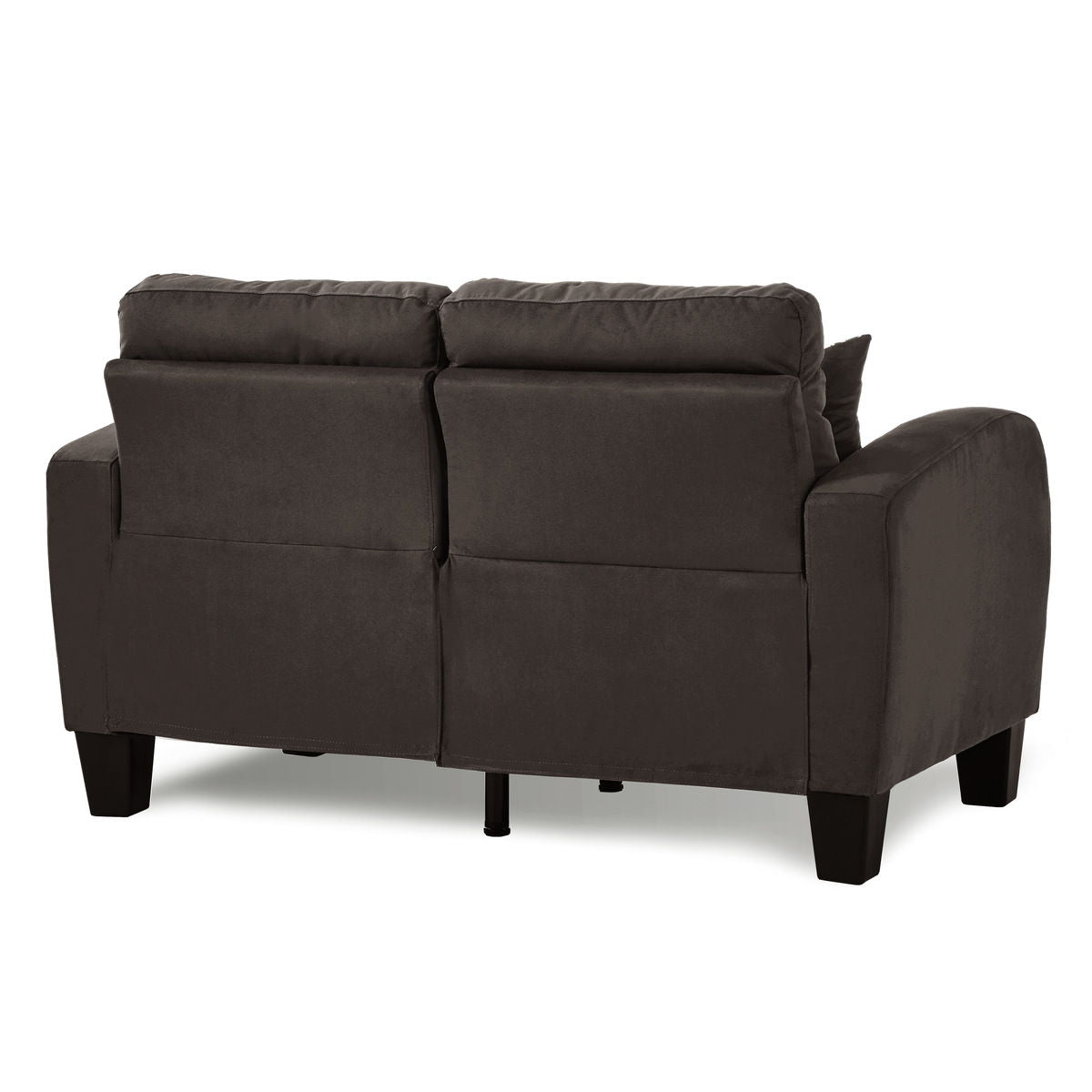 A hint of retro styling provides a clean and classic look for your contemporary home in the Sinclair Collection. The love seat allows for the perfect placement within your living room. Fabric with contrast pillows that furthers the look and versatility for placement within a number of home decors.