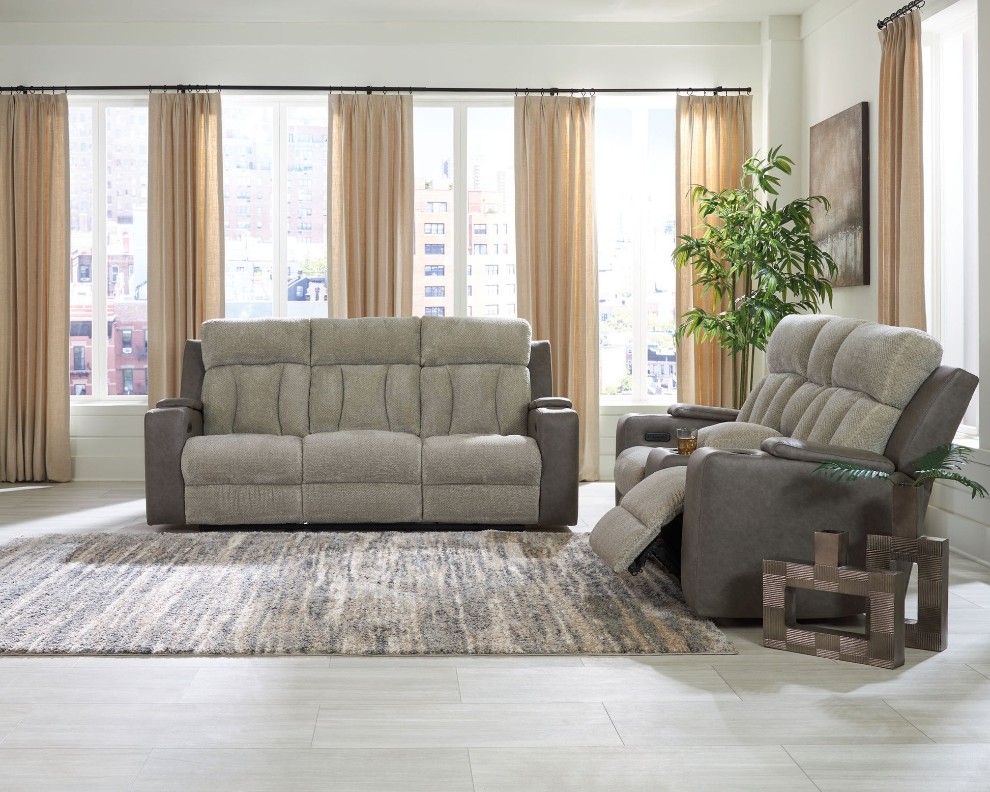 Stately Check - 3 Pc. - Power Reclining Sofa, Power Reclining Loveseat With Console, Power Recliner - Sisal