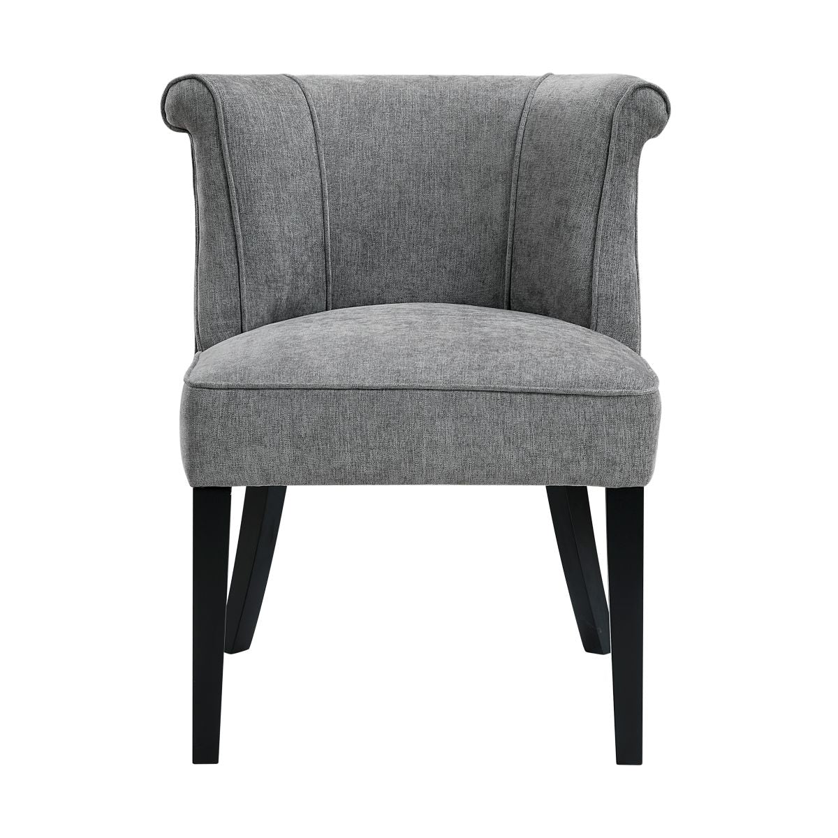 Elevate your home dcor with this sophisticated upholstered accent chair, designed to provide both comfort and style. Featuring a gracefully curved back with subtle piping detail, this chair adds a touch of classic elegance to any room. The neutral-toned, textured fabric upholstery complements a variety of interior styles, while the generously padded seat ensures comfortable seating. Sturdy dark wood legs provide a stable and stylish foundation, making this accent chair a perfect addition to your living room, bedroom, dining area, or entryway. Enhance your space with this versatile and chic accent piece that seamlessly blends functionality with refined design.