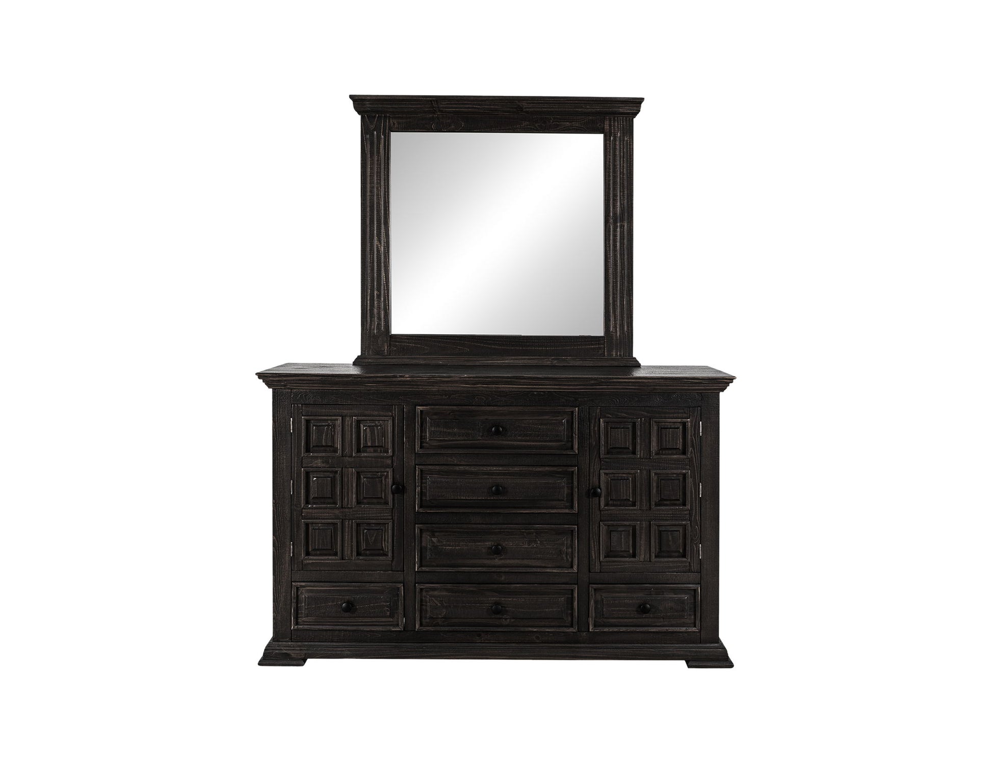 Bedroom Mirror. Drawing inspiration from transitional design, the Terra collection embodies the effortless elegance of its clean, sturdy shapes and the charming rustic grain of solid pine wood. With a tasteful deep finish, this collection represents a harmonious fusion of modern and traditional elements, making it a timeless addition to your home.
