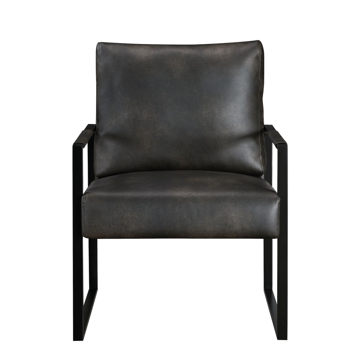 Add a touch of modern sophistication to your space with this stylish metal accent chair upholstered in sleek faux leather. Designed for both comfort and contemporary flair, this chair features a minimalist metal frame with clean lines, perfectly balancing durability and elegance. The rich brown faux leather offers a luxurious look and feel, while being easy to maintain, making it ideal for busy households. Whether used in the living room, office, or bedroom, this accent chair complements a wide range of dcor styles, from industrial to modern and mid-century.