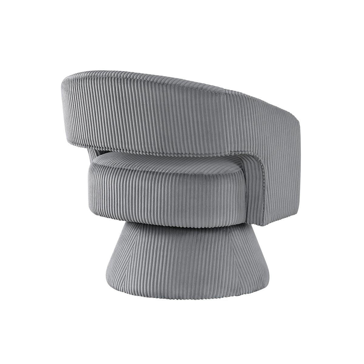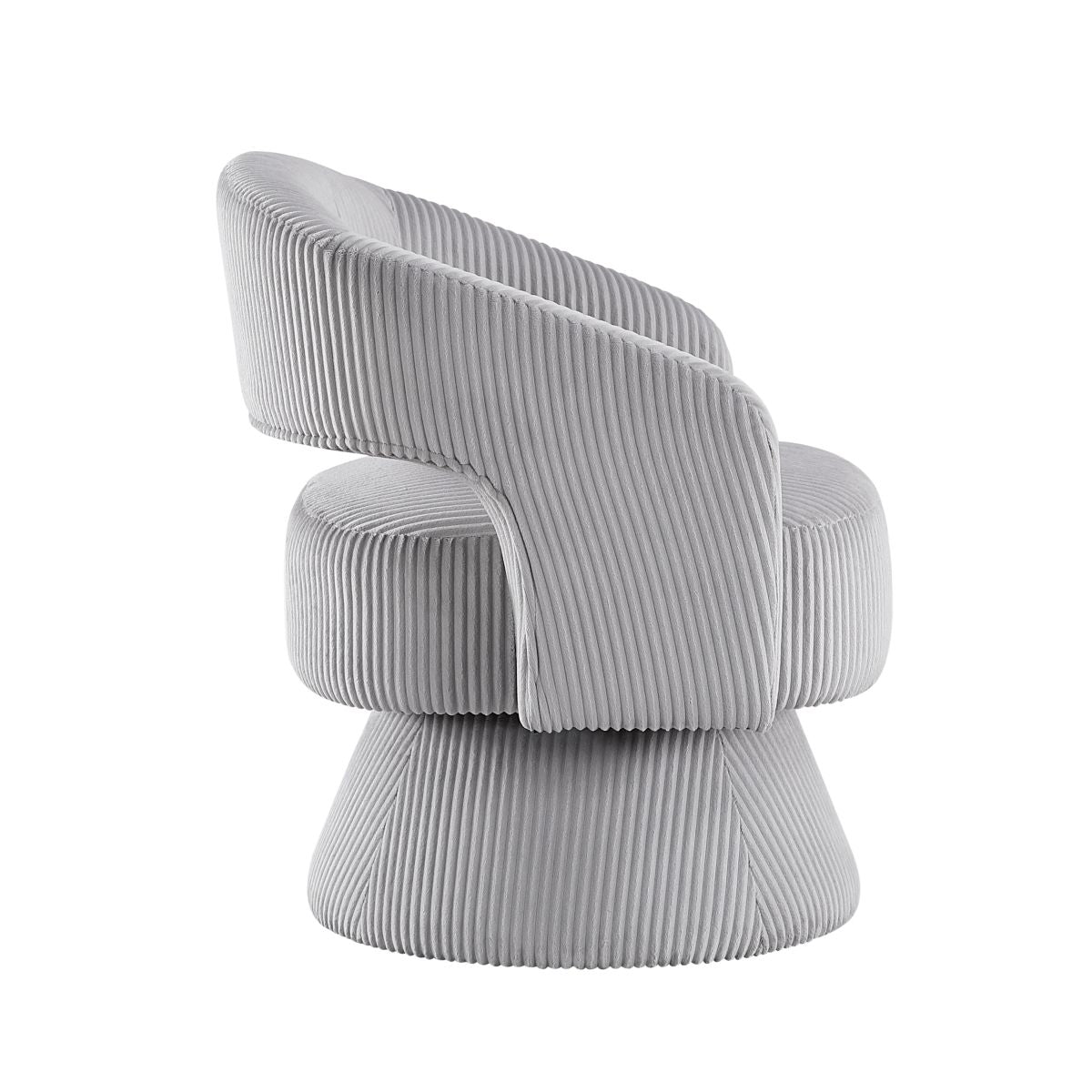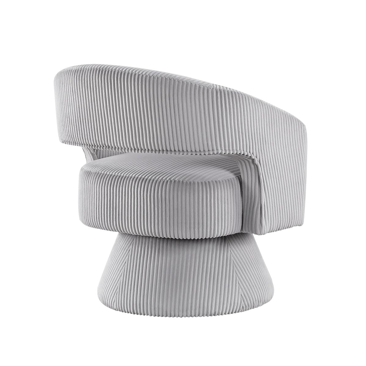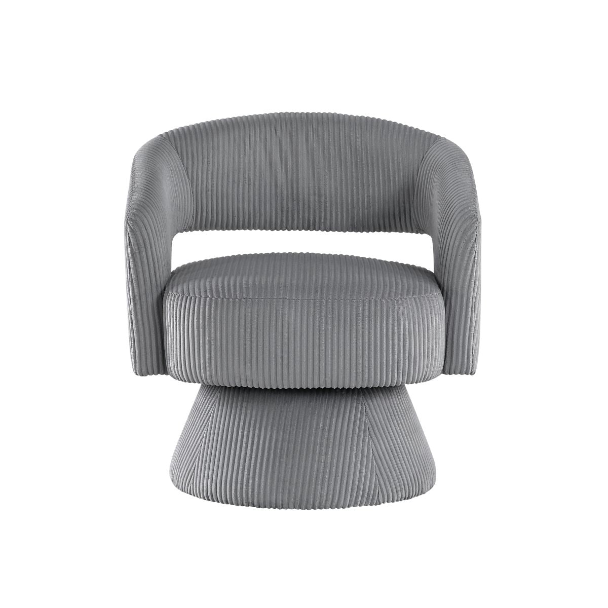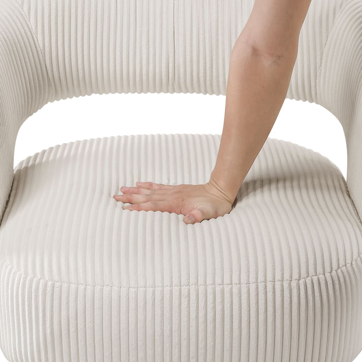 Elevate your home with this modern corduroy swivel accent chair, featuring a unique textured design and soft corduroy upholstery. Perfect for those seeking a blend of style and comfort, this chairs eye-catching shape and luxurious fabric add a sophisticated touch to any space. The 360-degree swivel base allows for versatile movement, making it an ideal choice for living rooms, bedrooms, or stylish home offices. Its minimalist aesthetic and plush seating bring both functionality and elegance to contemporary interiors.